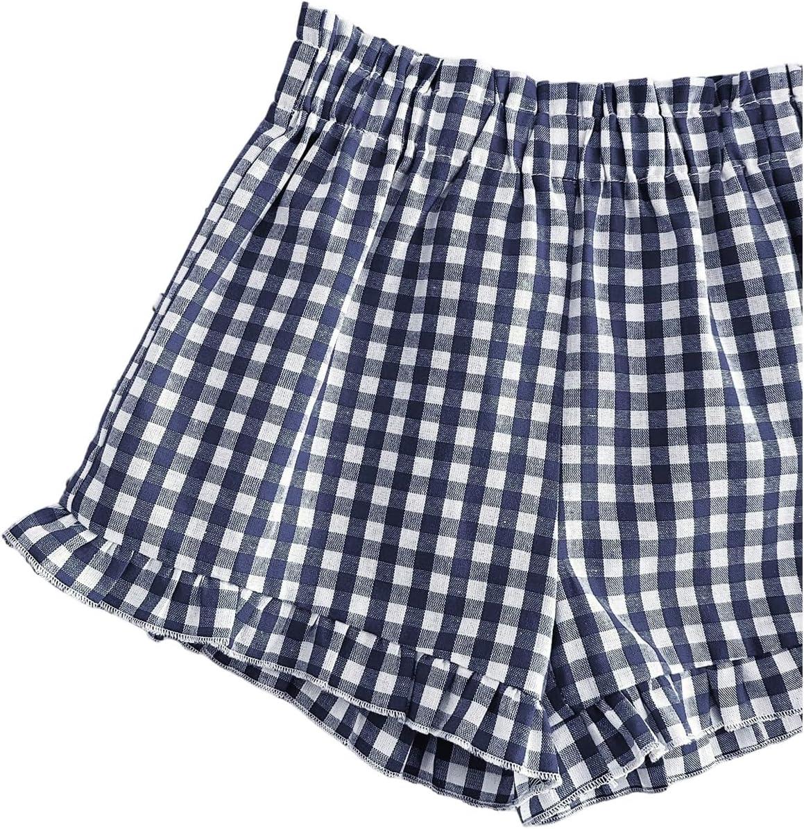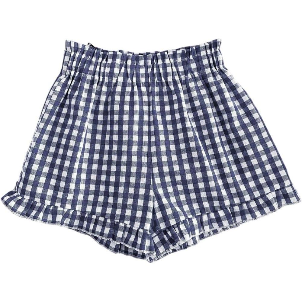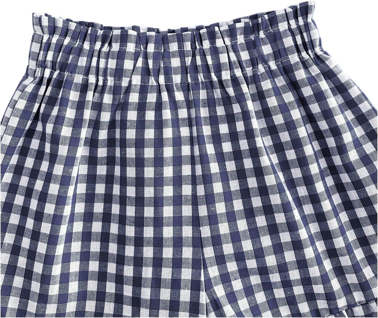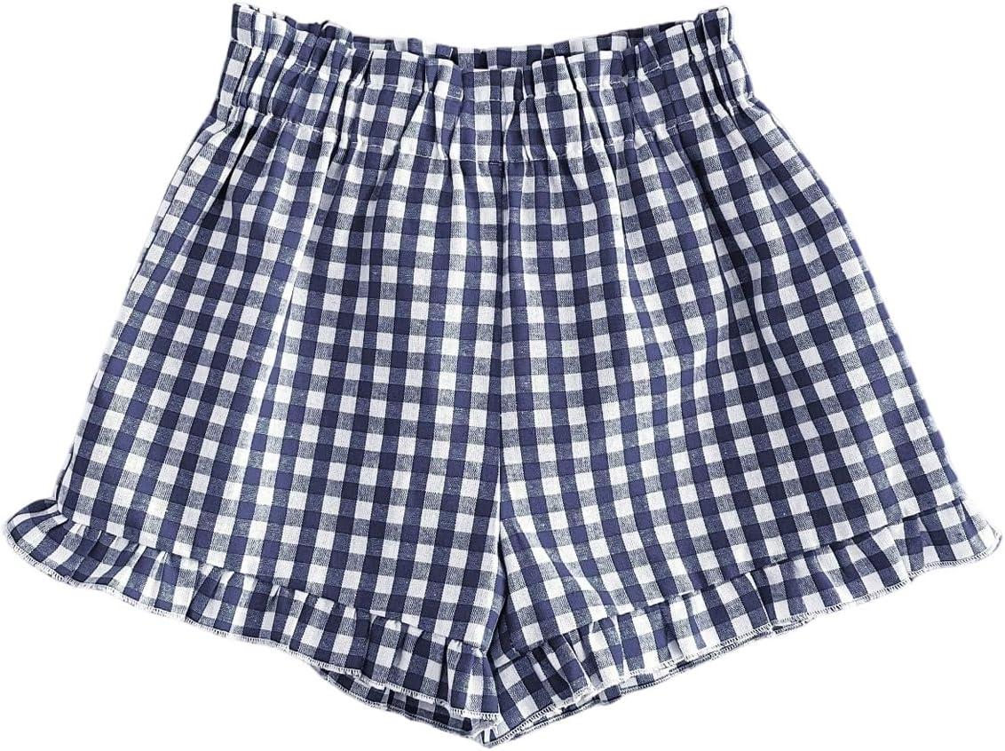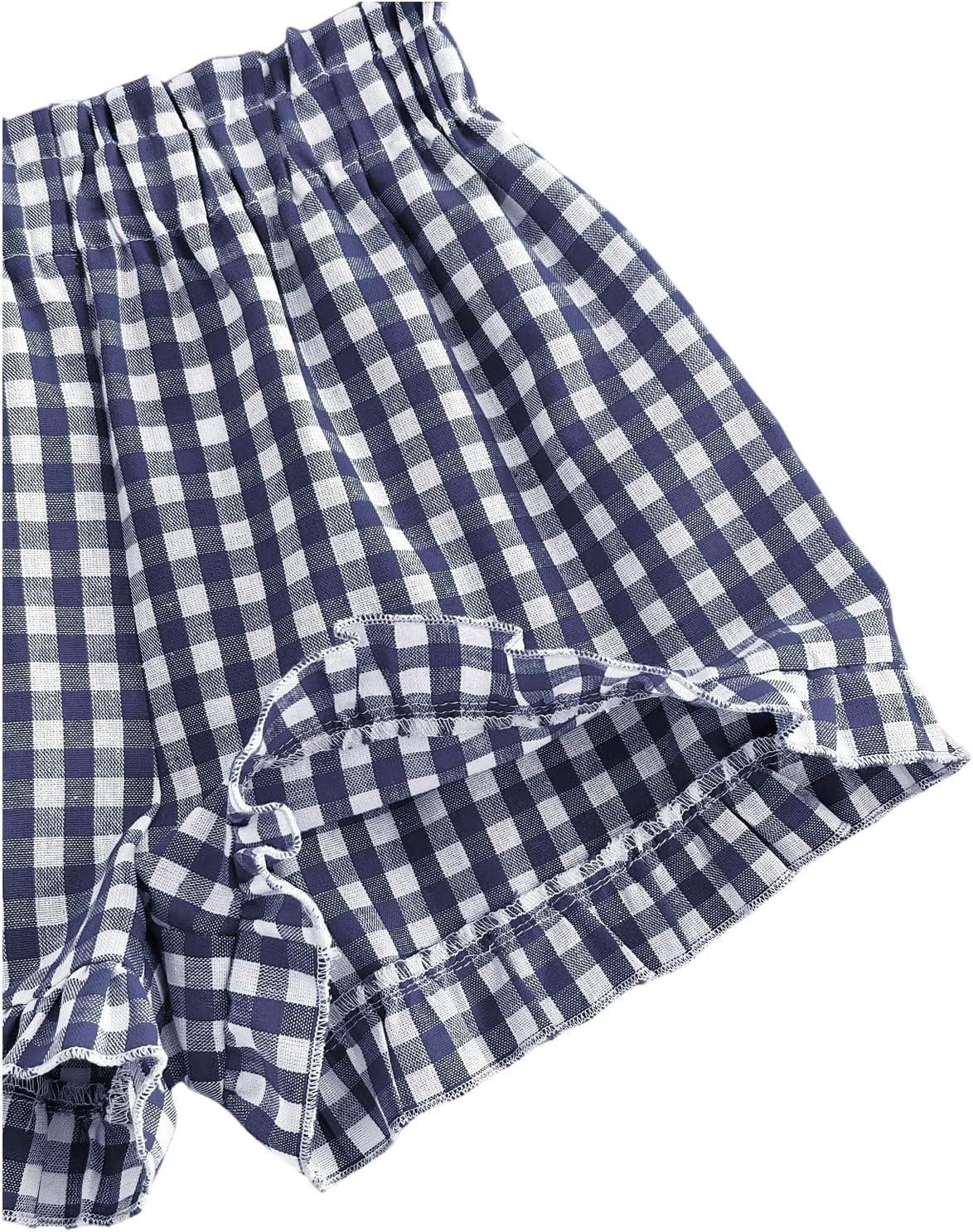 SOLY HUX Toddler Girl’s Plaid Shorts Elastic Waist Wide Leg Ruffle Hem Loose Casual Summer Shorts(Royal Blue Plaid)