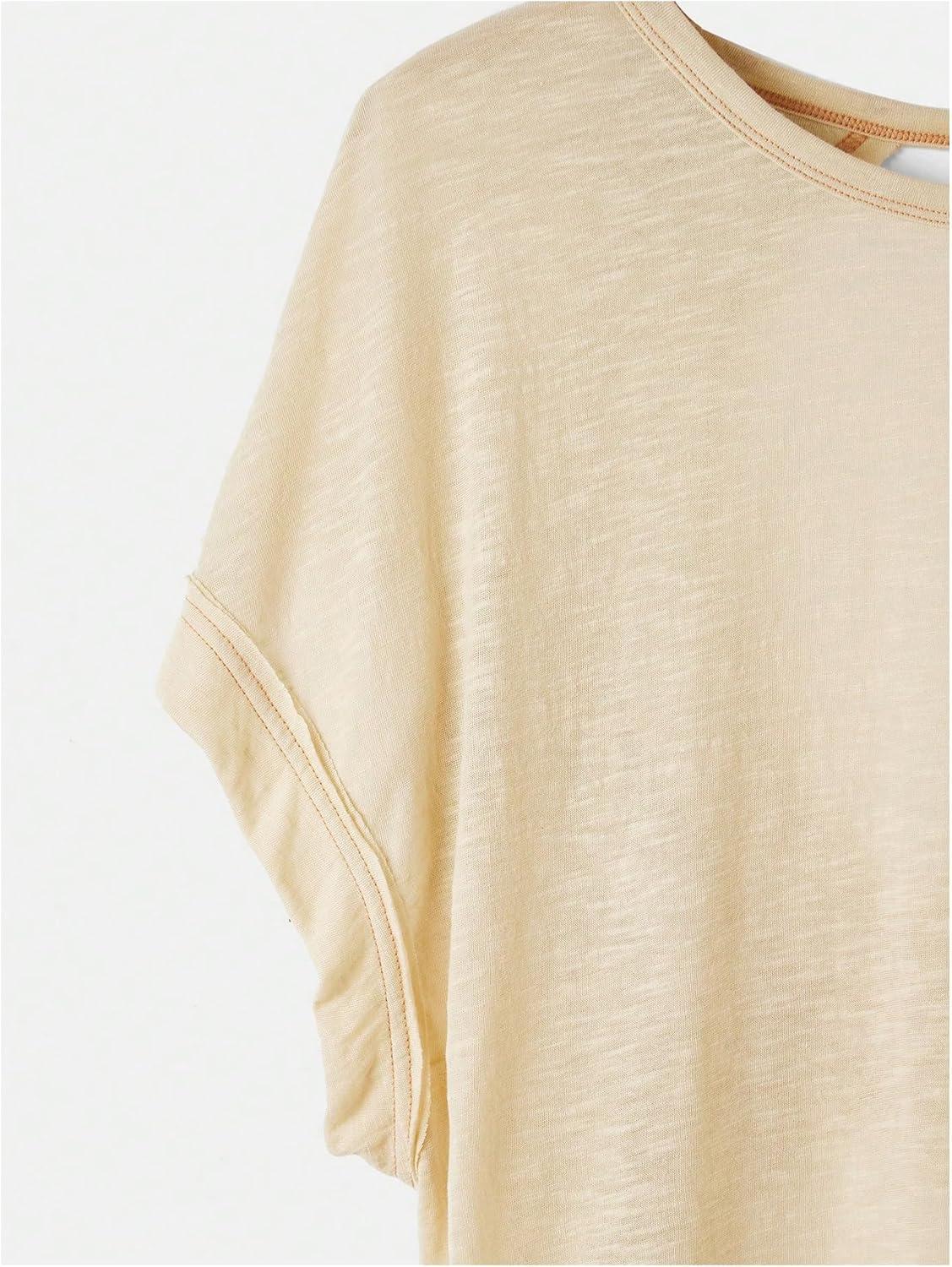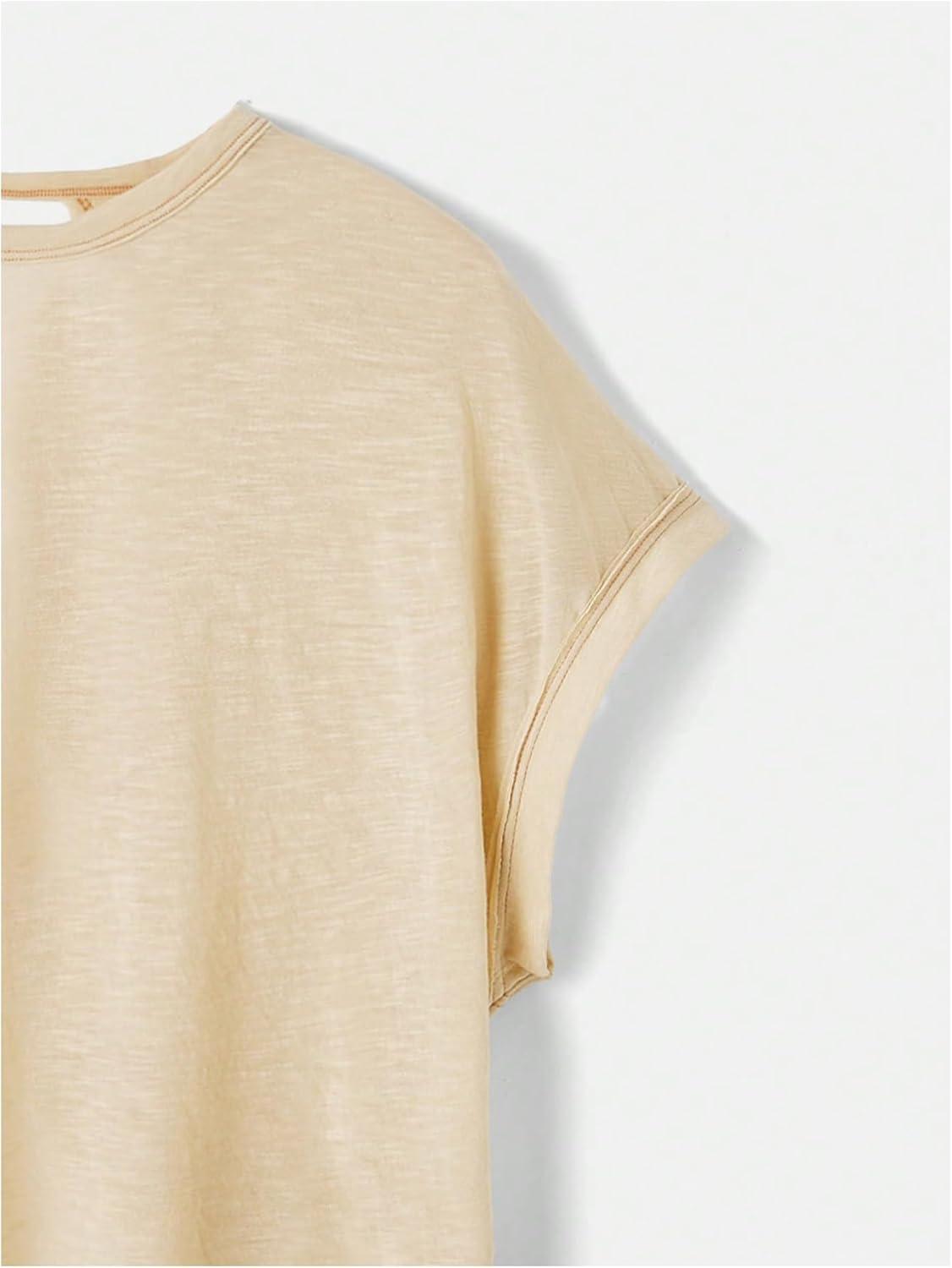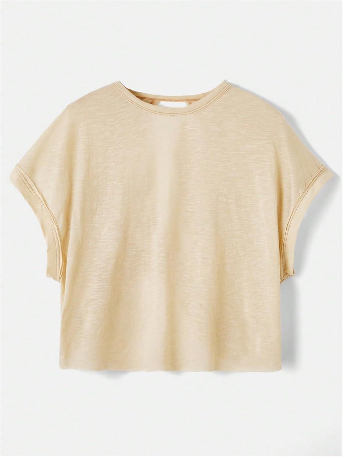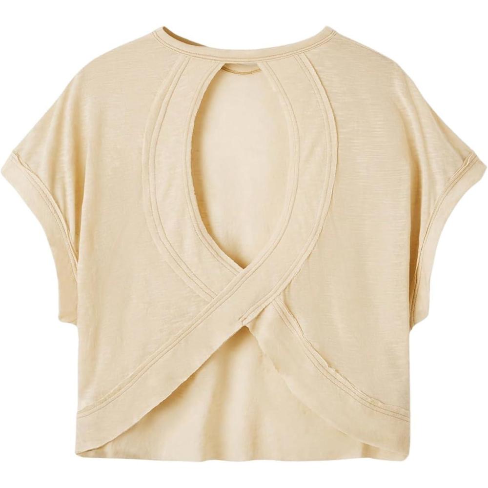 SOLY HUX Women Open Back Tops Workout Backless Tee Casual Athletic Shirts Short Sleeve Oversized Gym T Shirt(Plain Apricot)
