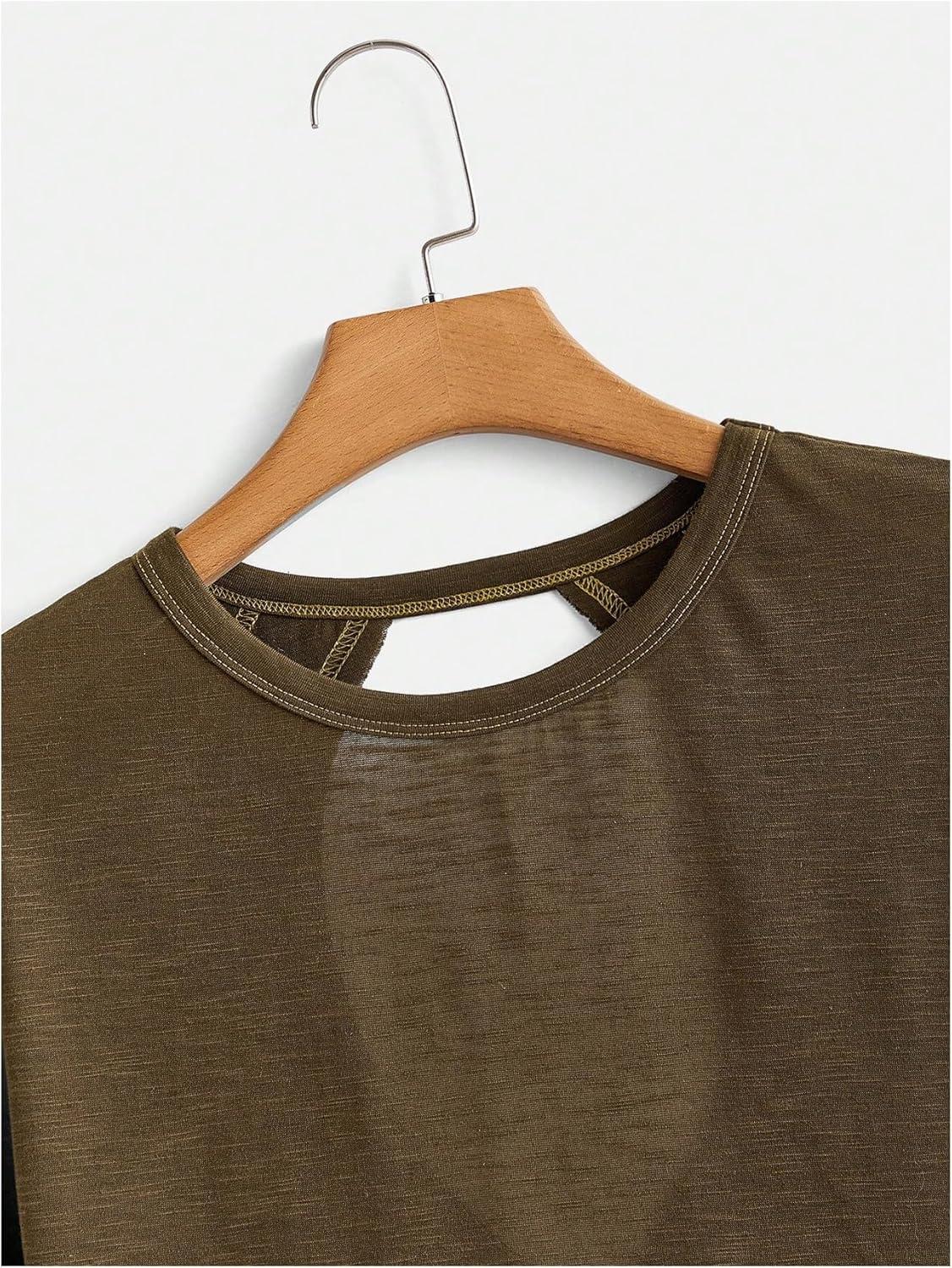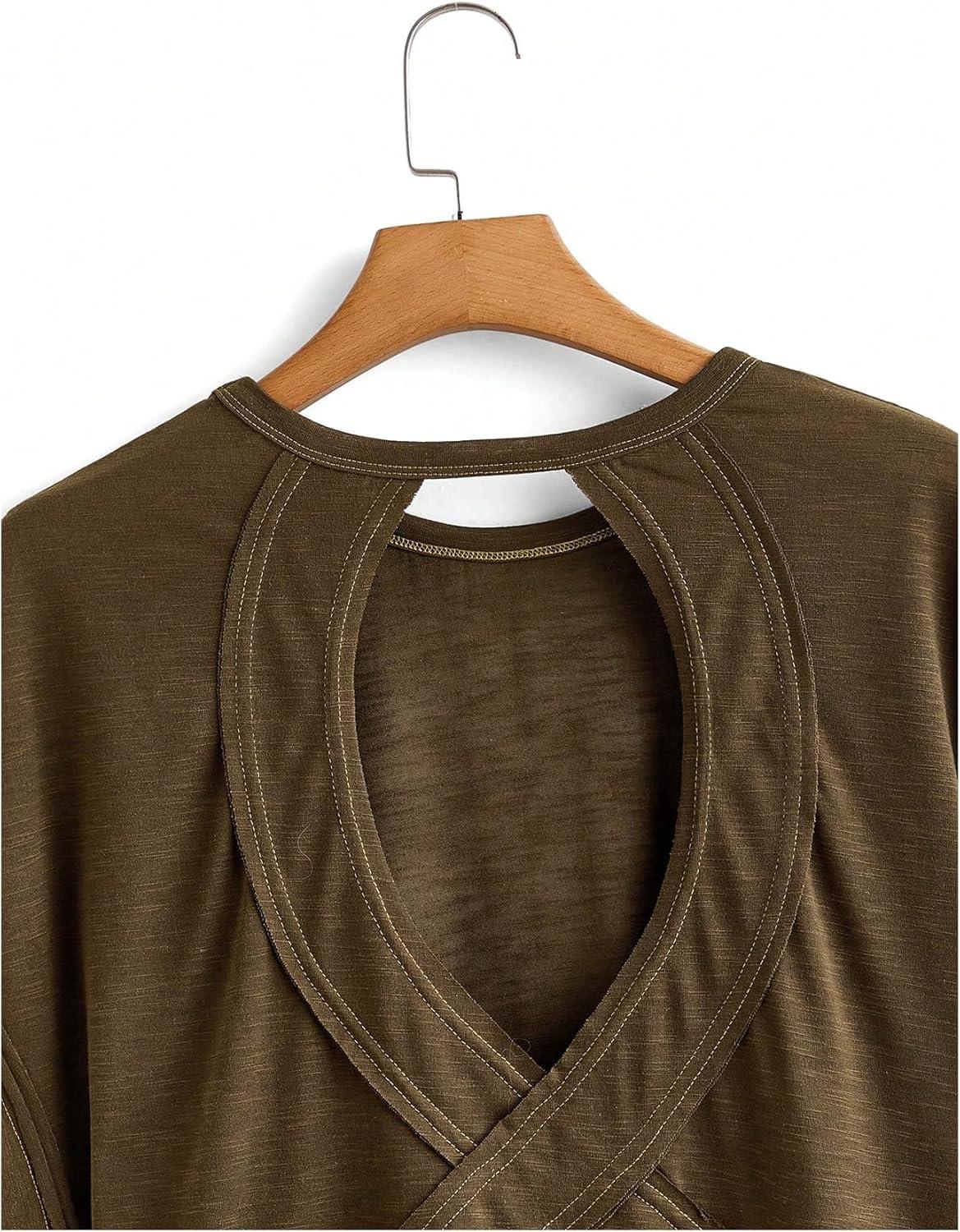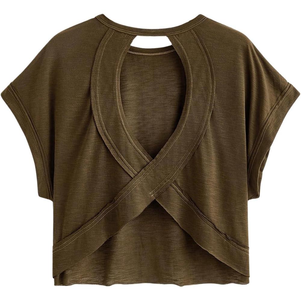 SOLY HUX Women Open Back Tops Workout Backless Tee Casual Athletic Shirts Short Sleeve Oversized Gym T Shirt(Plain Army Green)