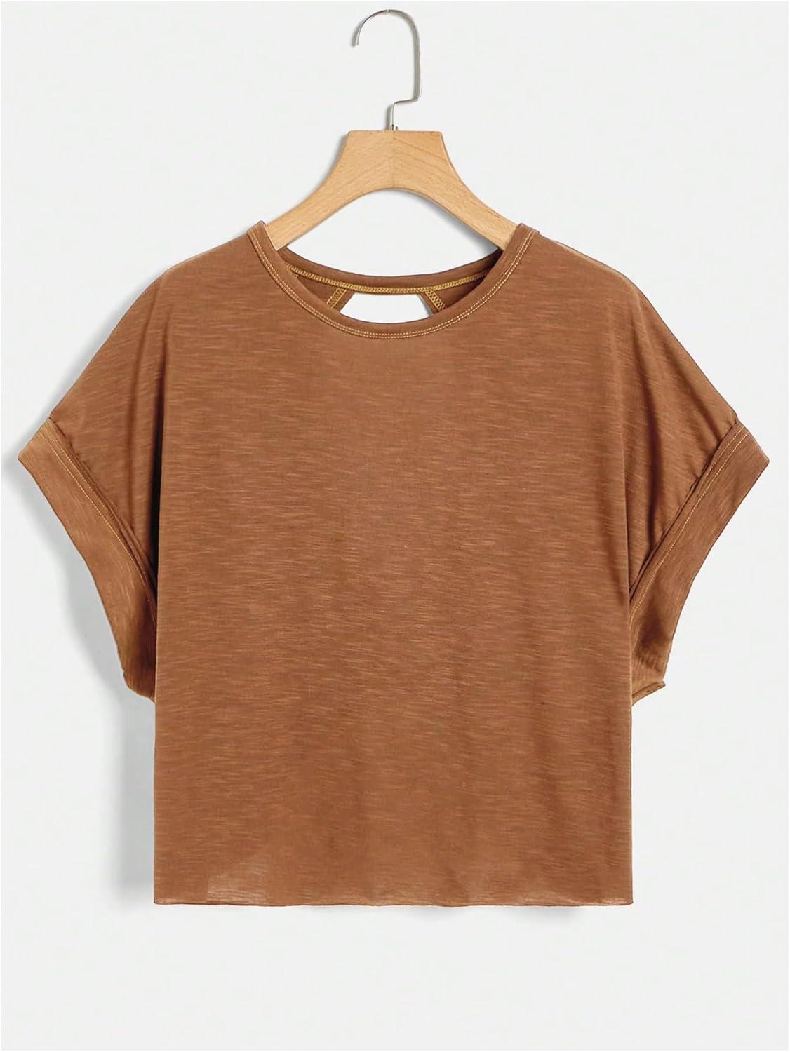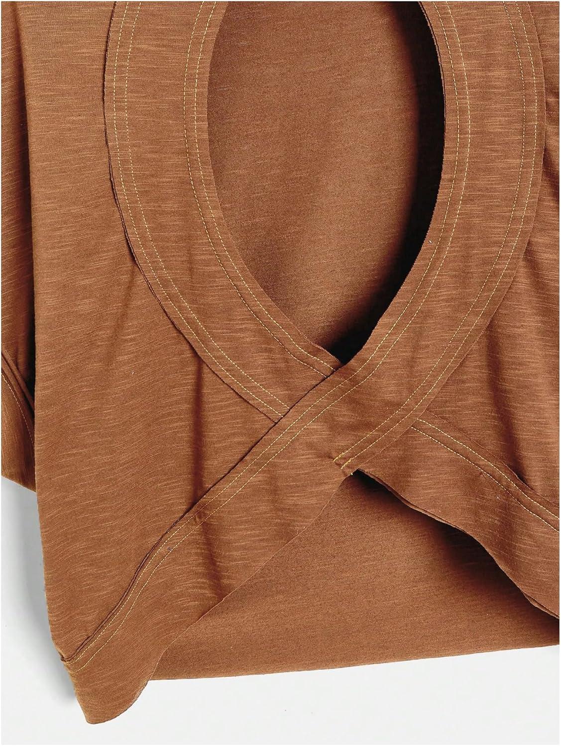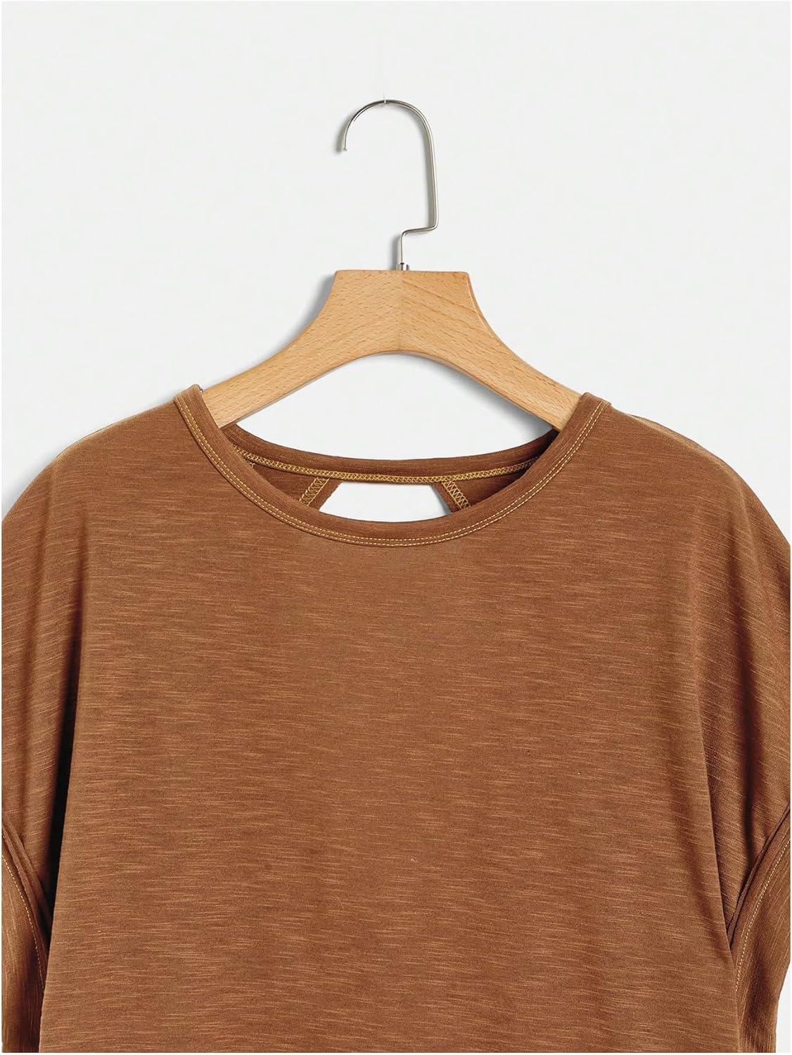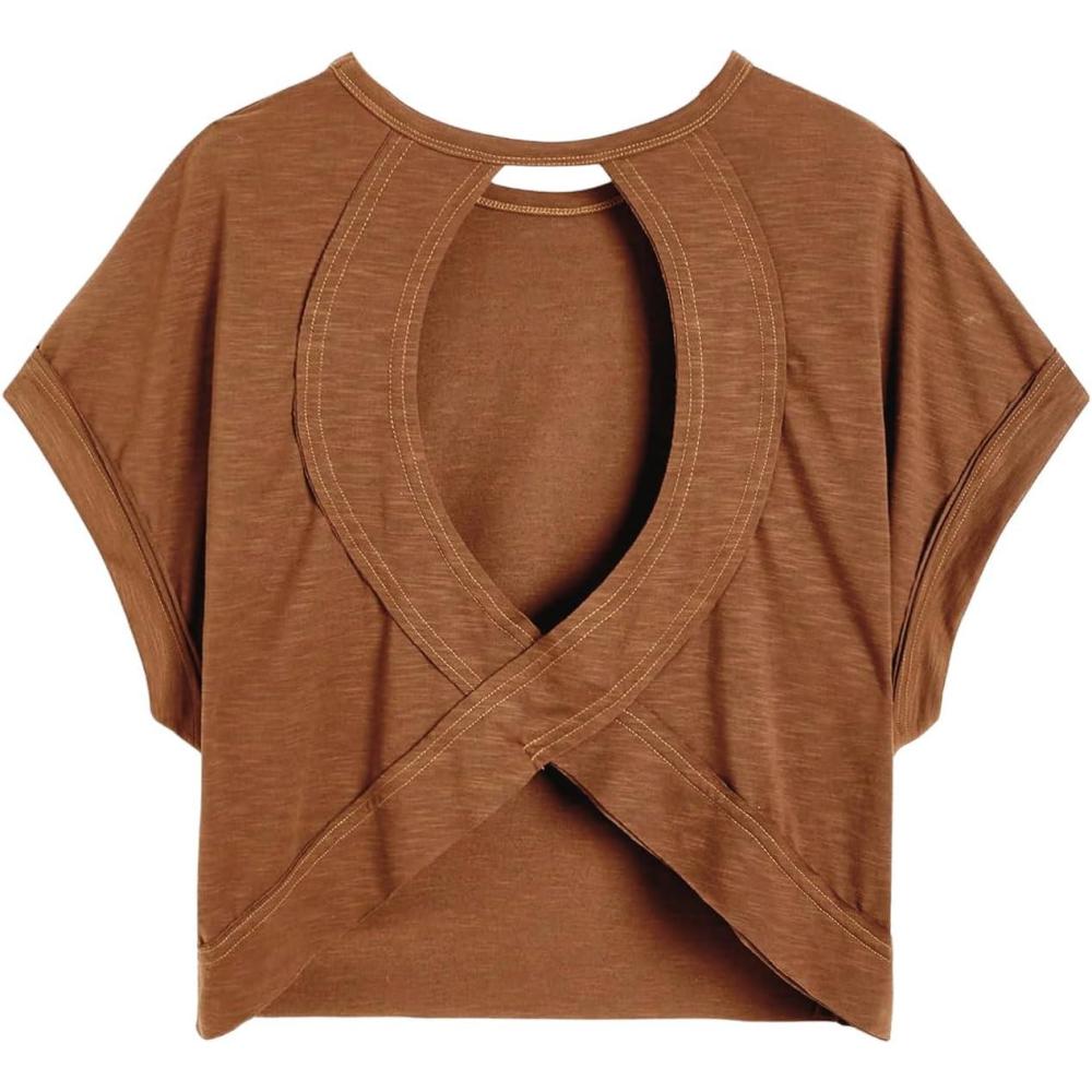 SOLY HUX Women Open Back Tops Workout Backless Tee Casual Athletic Shirts Short Sleeve Oversized Gym T Shirt(Plain Dark Brown)