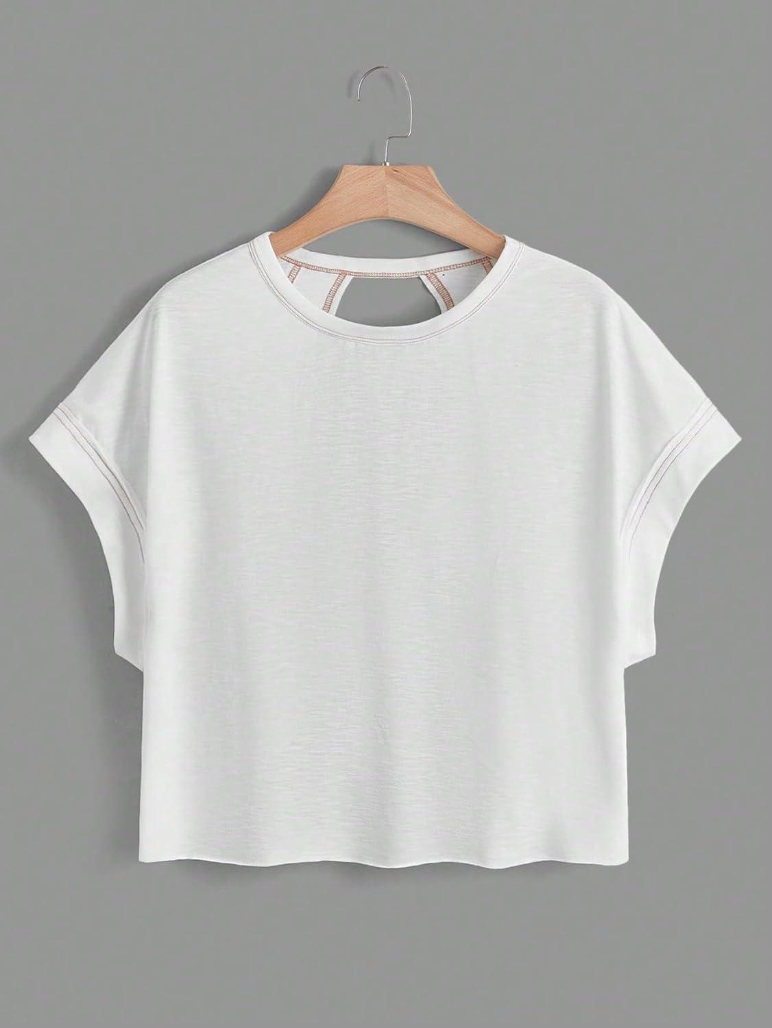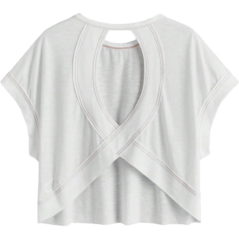 SOLY HUX Women Open Back Tops Workout Backless Tee Casual Athletic Shirts Short Sleeve Oversized Gym T Shirt(Solid White)