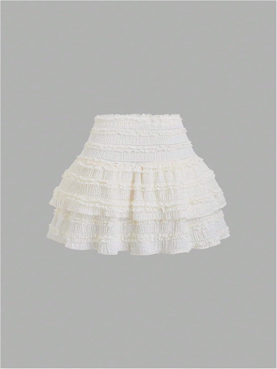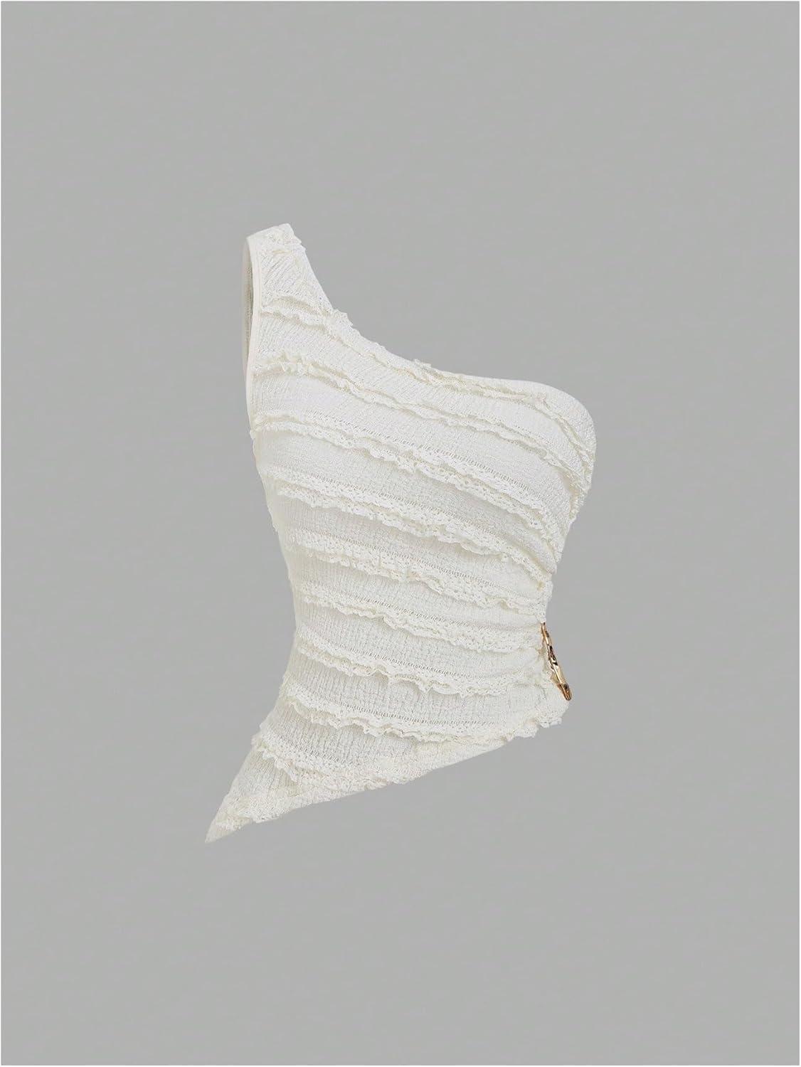 SOLY HUX Women’s 2 Piece Skirt Sets Y2k One Shoulder Tank Tops and Ruffle Layered Mini Skirt Summer Vacation Outfits(Pure Apricot)