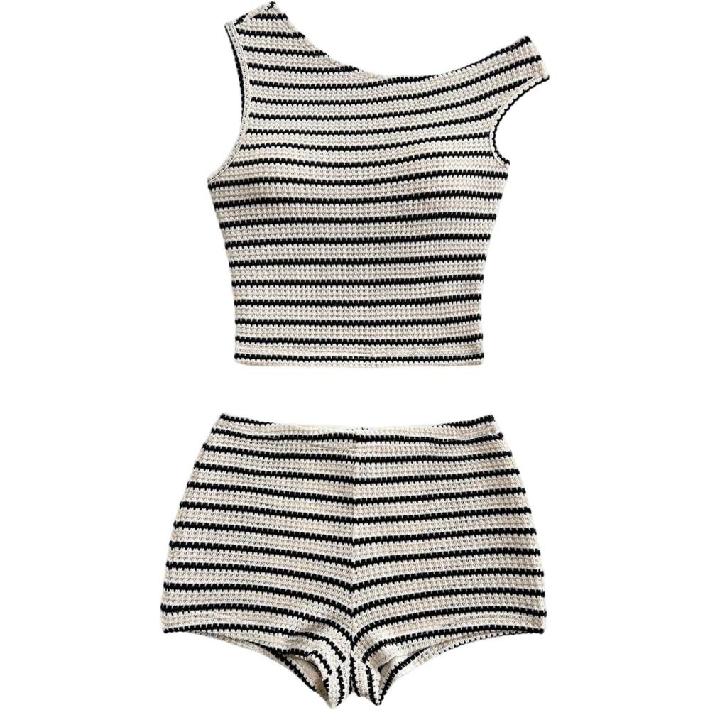 Don’t wait, get up to 50% off on SOLY HUX Women’s 2 Piece Striped Off The Shoulder Crop Tops and Mini Shorts Set Summer Y2K Going Out Outfits(Black and White Striped) during our end-of-season sale event.