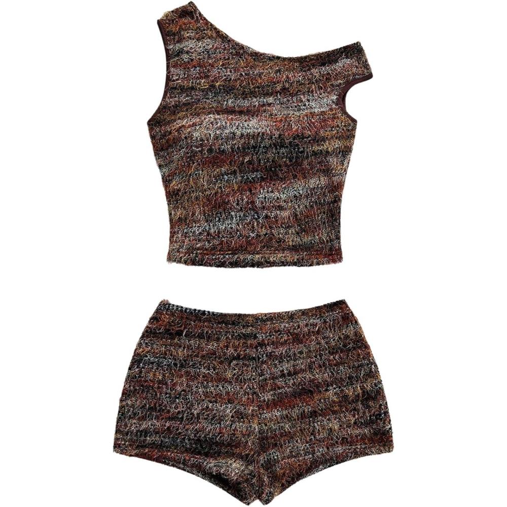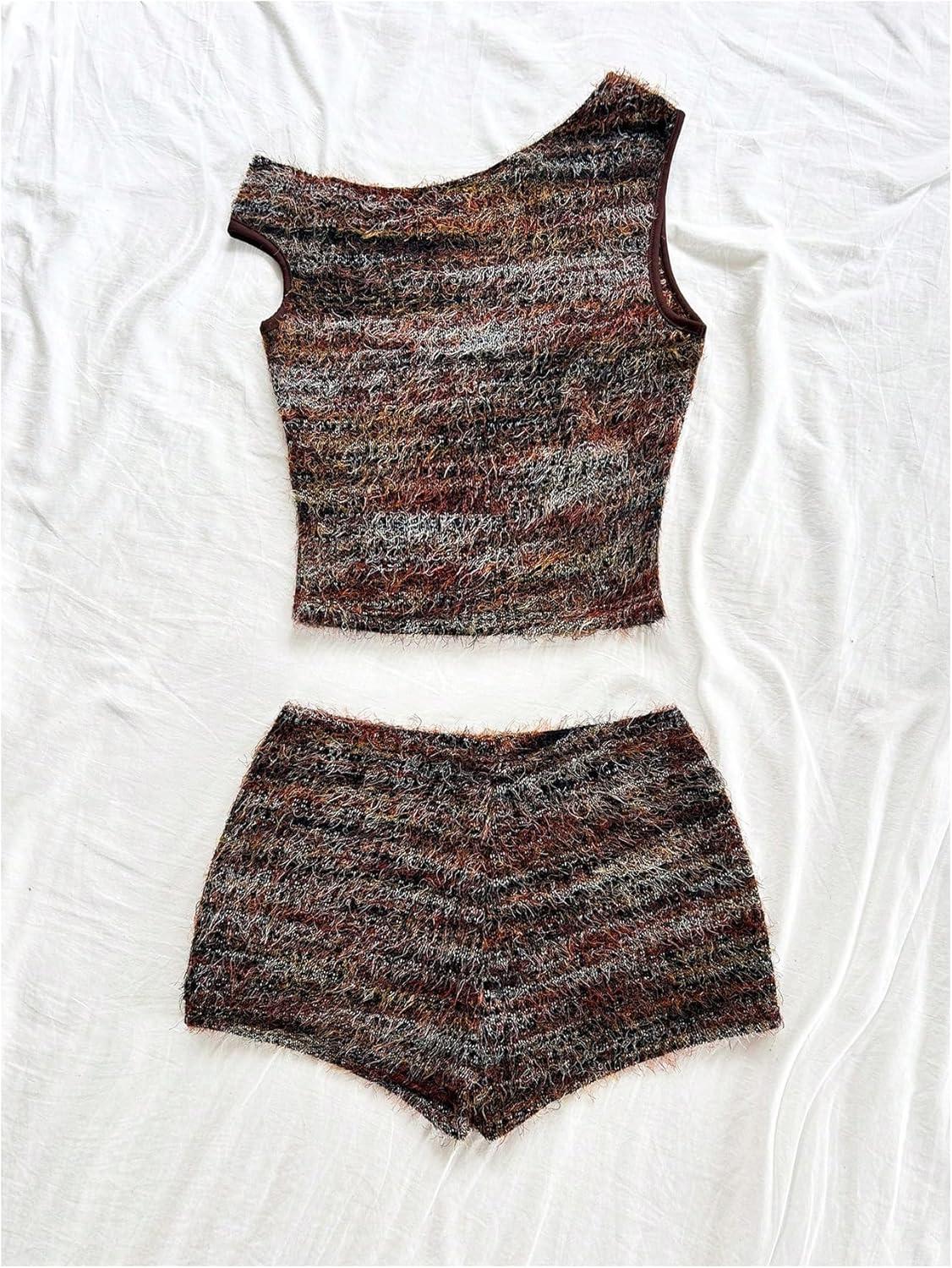 SOLY HUX Women’s 2 Piece Striped Off The Shoulder Crop Tops and Mini Shorts Set Summer Y2K Going Out Outfits(Multicolor Fuzzy)