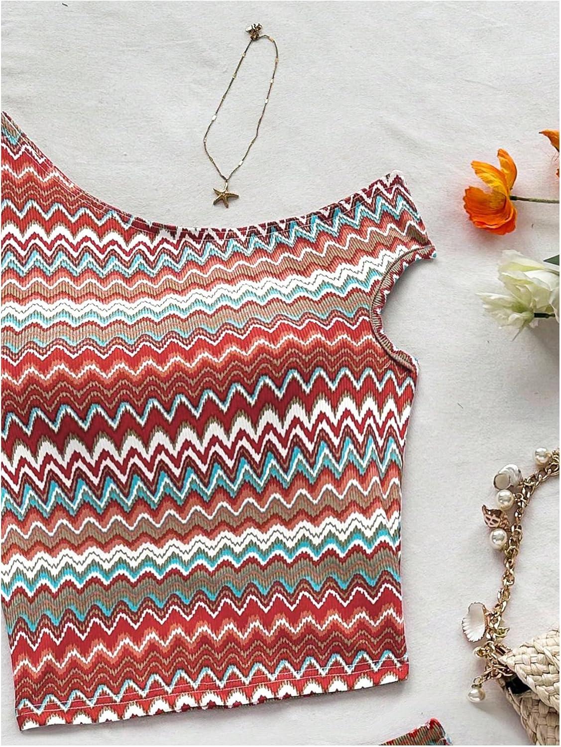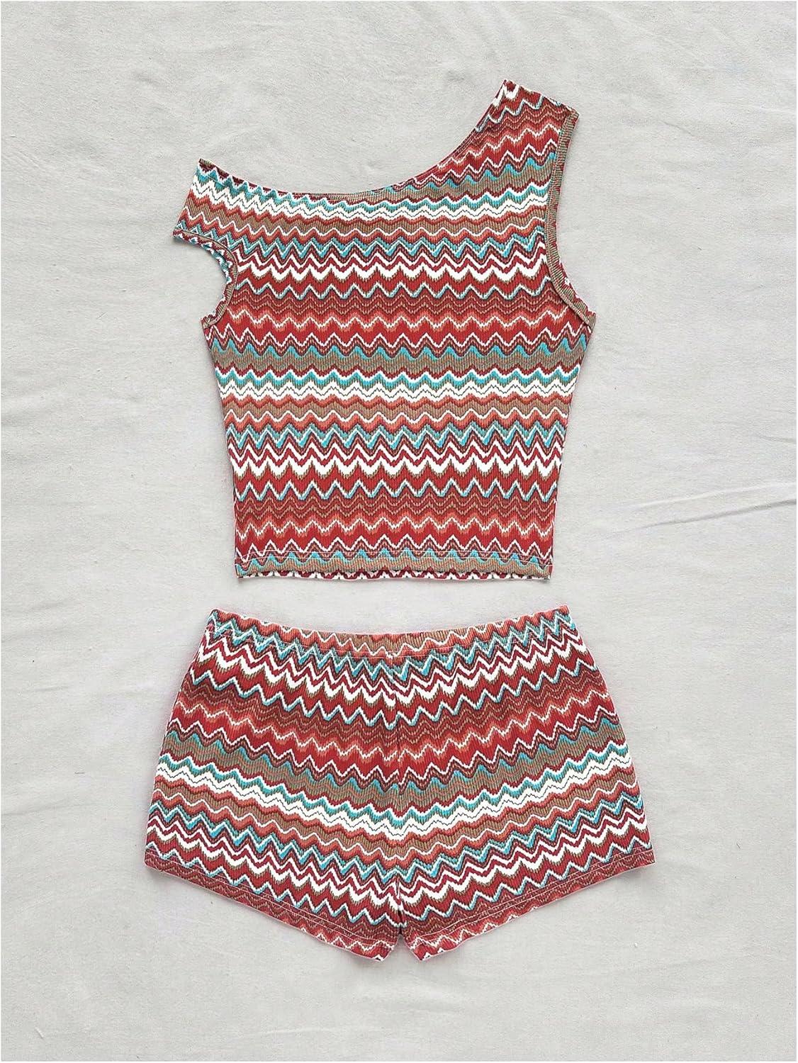 SOLY HUX Women’s 2 Piece Striped Off The Shoulder Crop Tops and Mini Shorts Set Summer Y2K Going Out Outfits(Multicoloured Chevron)