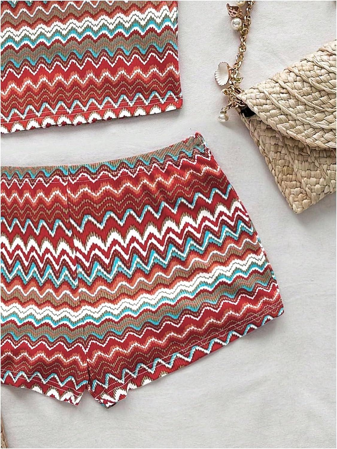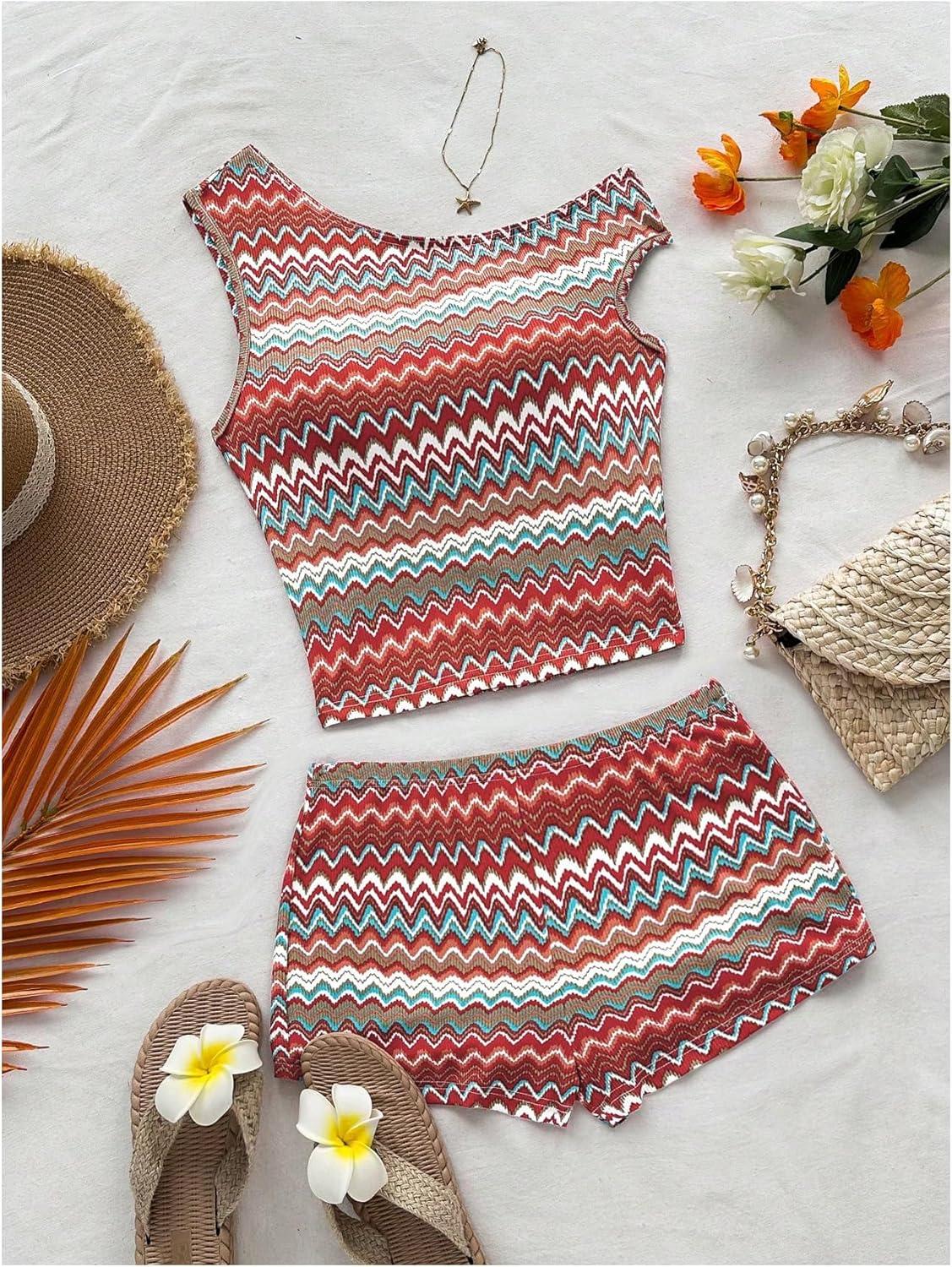 imageSOLY HUX Womens 2 Piece Striped Off The Shoulder Crop Tops and Mini Shorts Set Summer Y2K Going Out OutfitsMulticolor Chevron