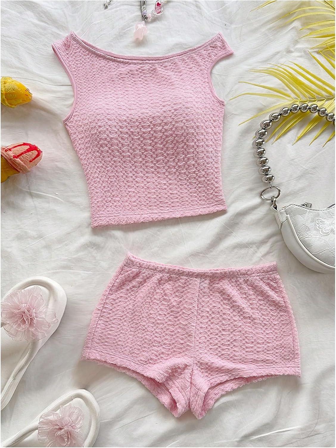 Be the first to review “SOLY HUX Women’s 2 Piece Striped Off The Shoulder Crop Tops and Mini Shorts Set Summer Y2K Going Out Outfits(Pure Pink Textured)”