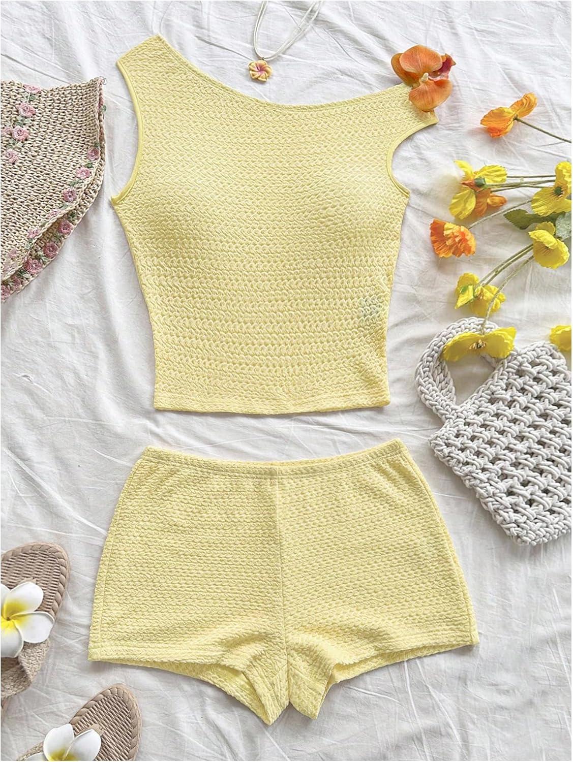Be the first to review “SOLY HUX Women’s 2 Piece Striped Off The Shoulder Crop Tops and Mini Shorts Set Summer Y2K Going Out Outfits(Pure Yellow Textured)”