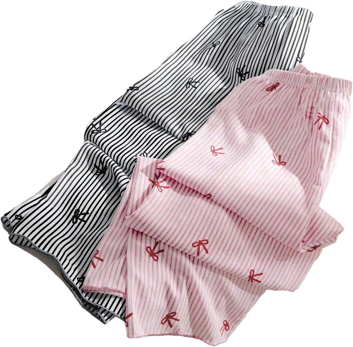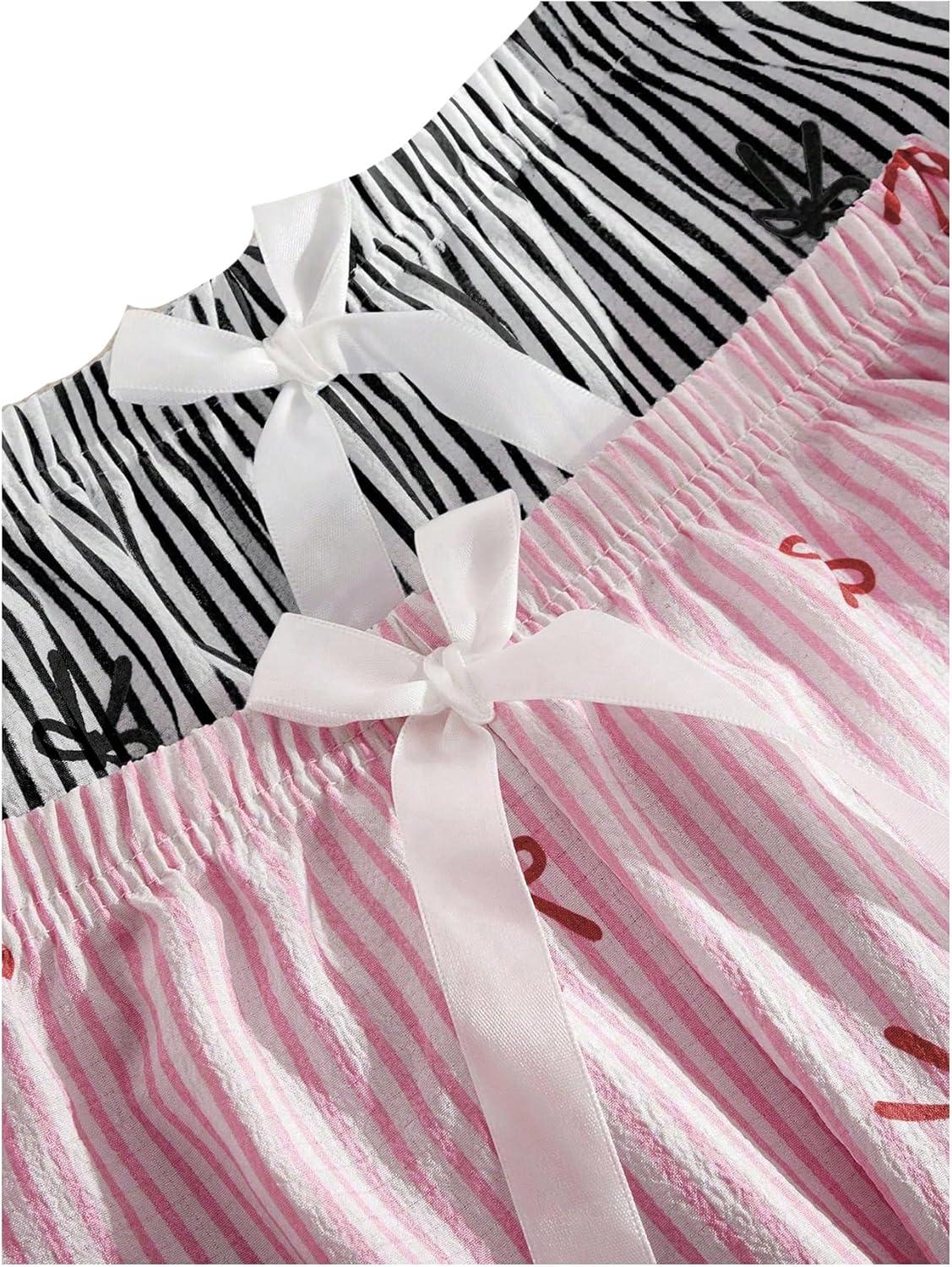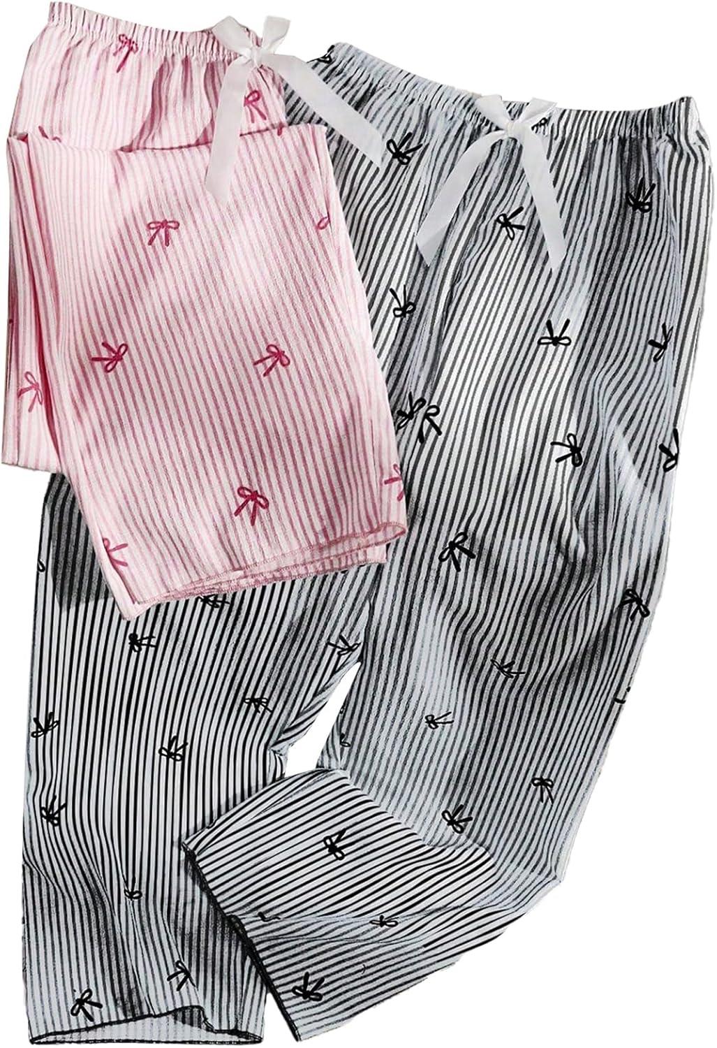 SOLY HUX Women’s 2 Piece Striped Pajama Bottoms Bow Elastic Waist Lounge Sleep Pants(Pink and Black)