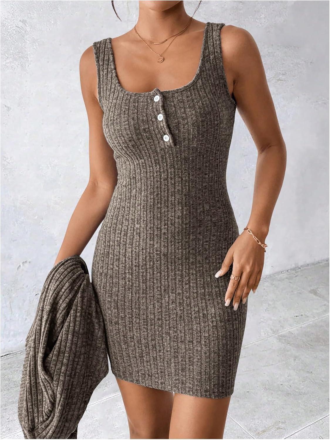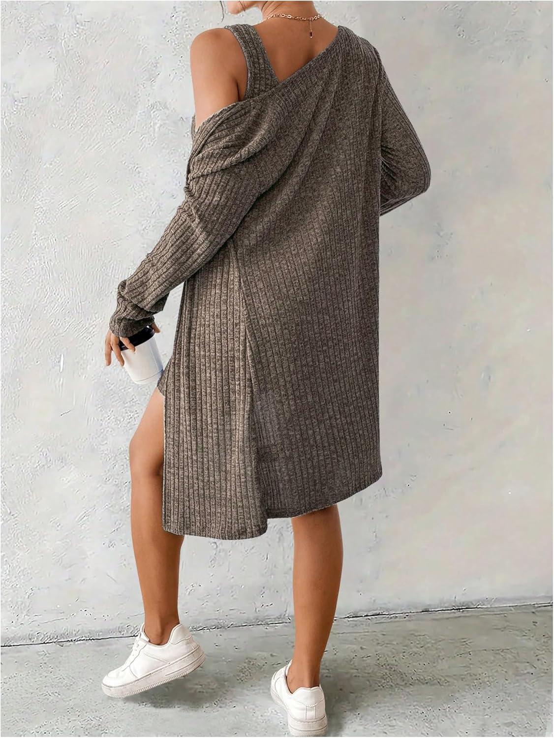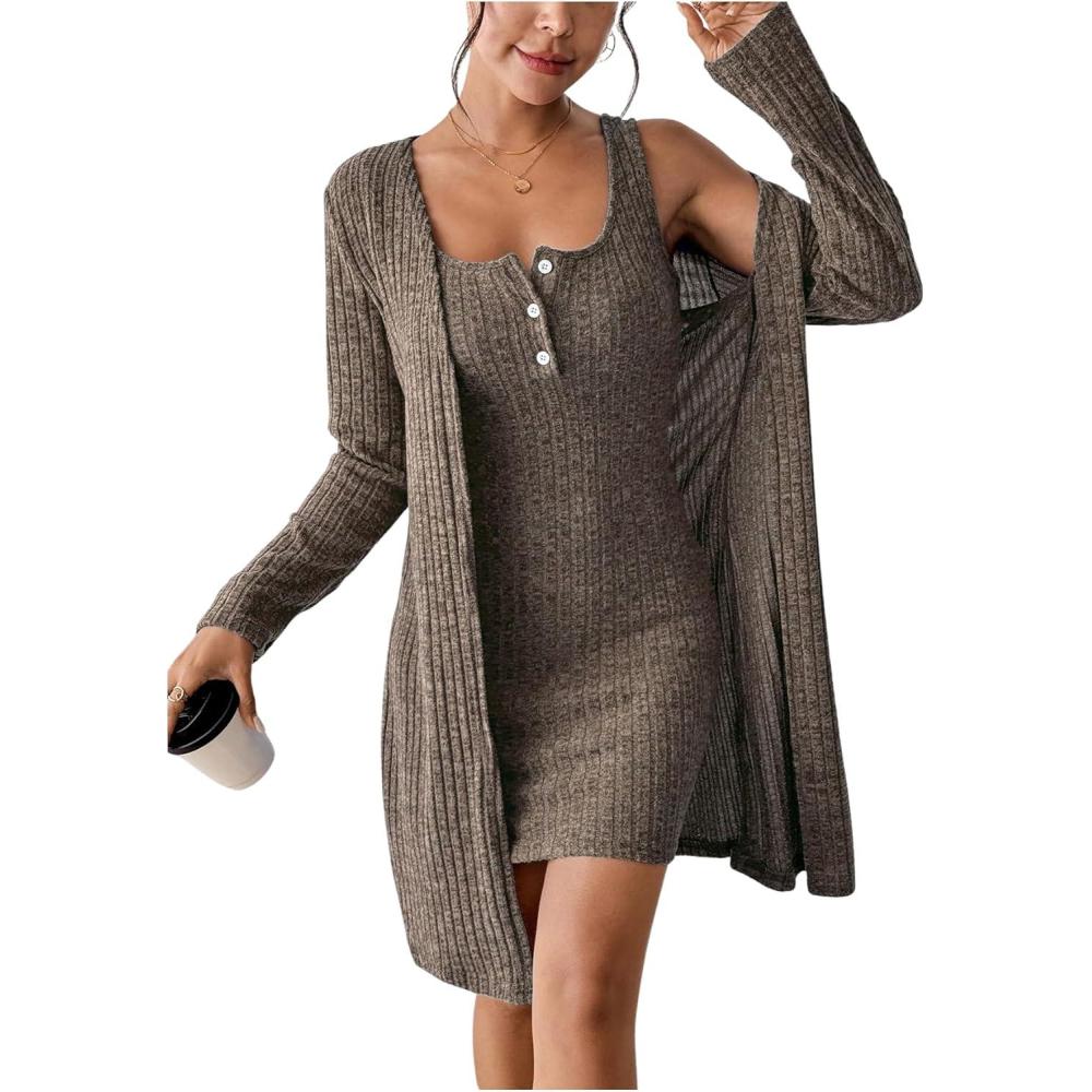 SOLY HUX Women’s 2 Piece Sweater Dress Set Knit Long Sleeve Open Front Cardigan and Bodycon Mini Dress Fall Outfit(Pure Brown)