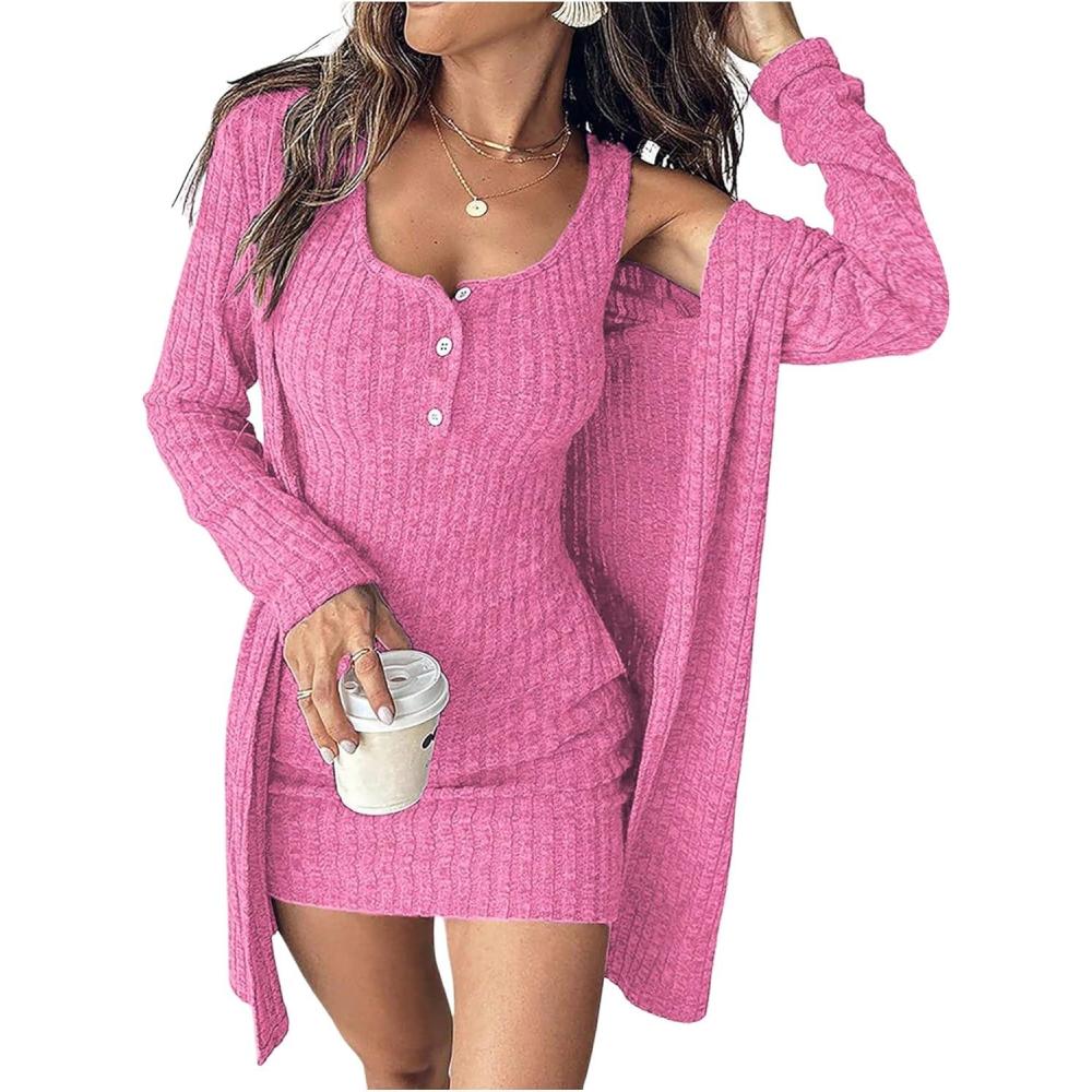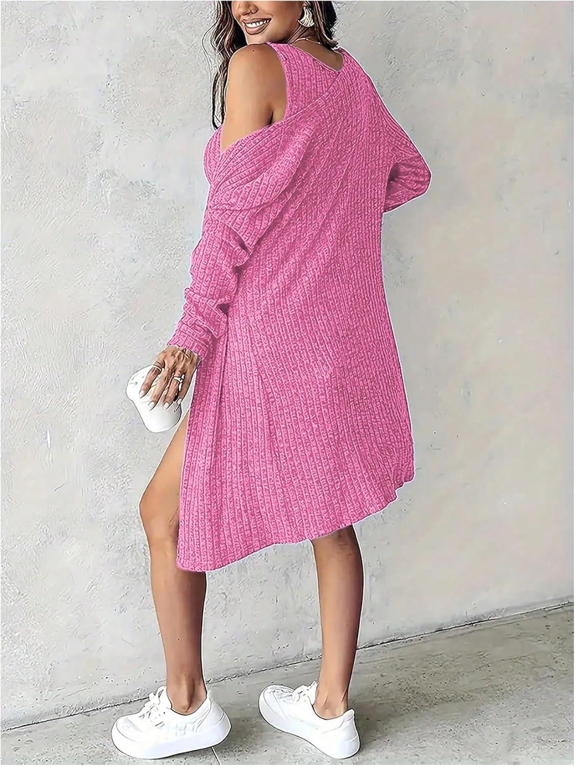SOLY HUX Women’s 2 Piece Sweater Dress Set Knit Long Sleeve Open Front Cardigan and Bodycon Mini Dress Fall Outfit(Pure Pink)