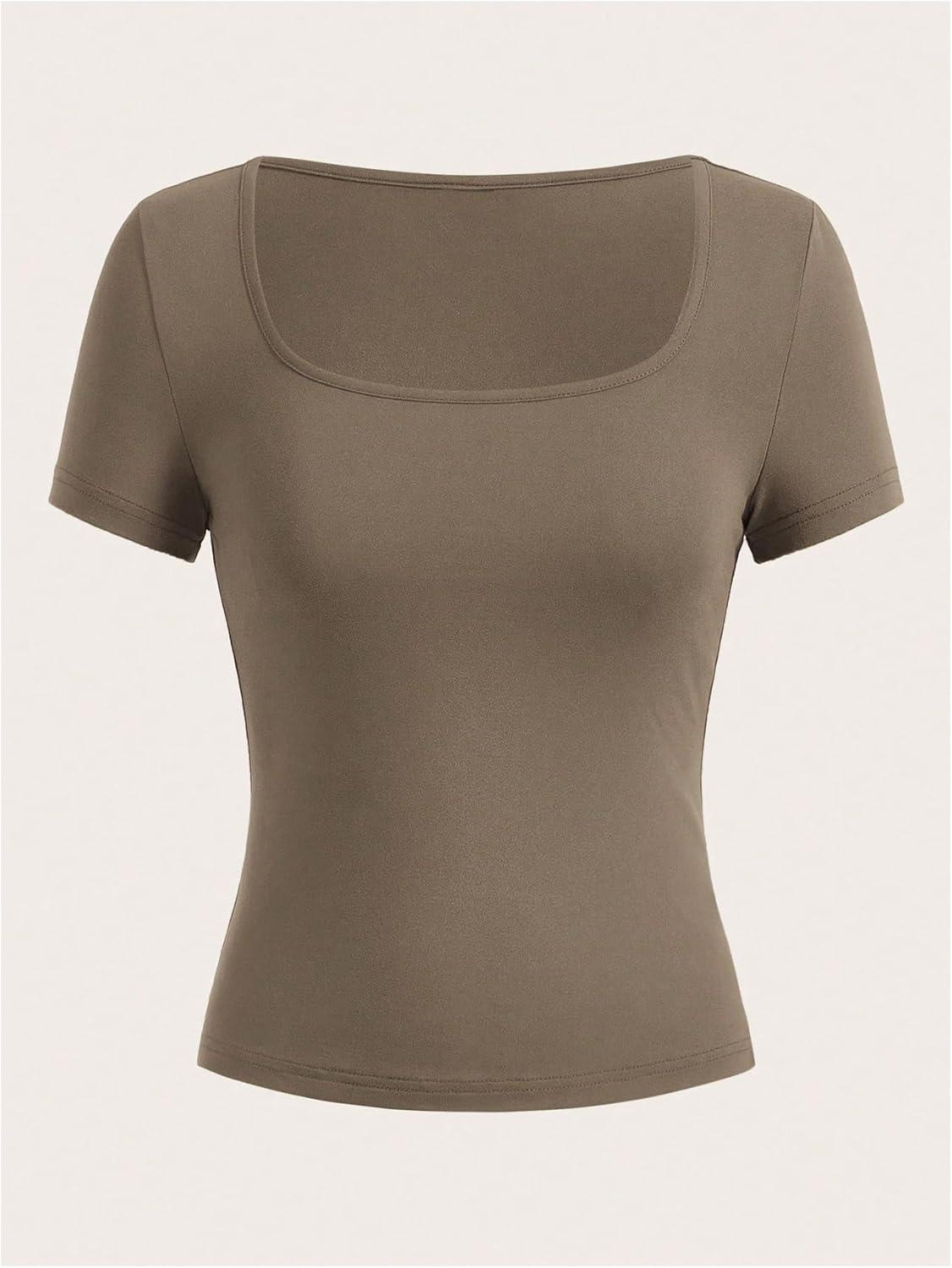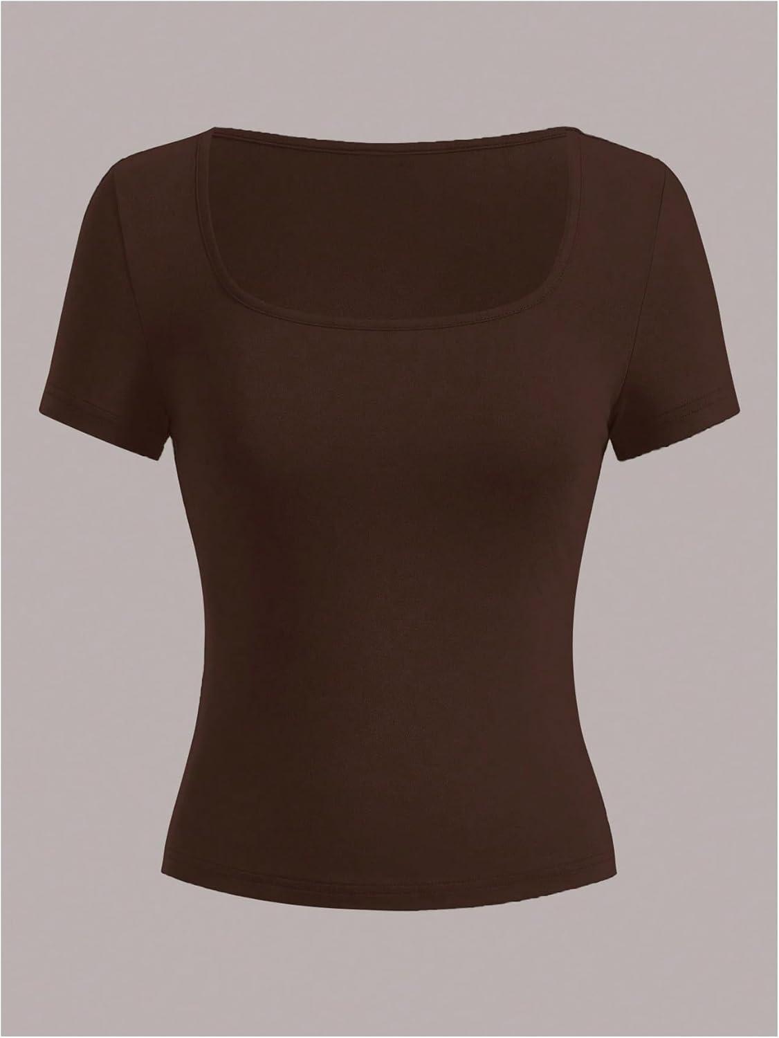 SOLY HUX Women’s 3 Piece Square Neck T Shirts Summer Short Sleeve Fitted Dressy Casual Tops(Multi Coffee Brown)