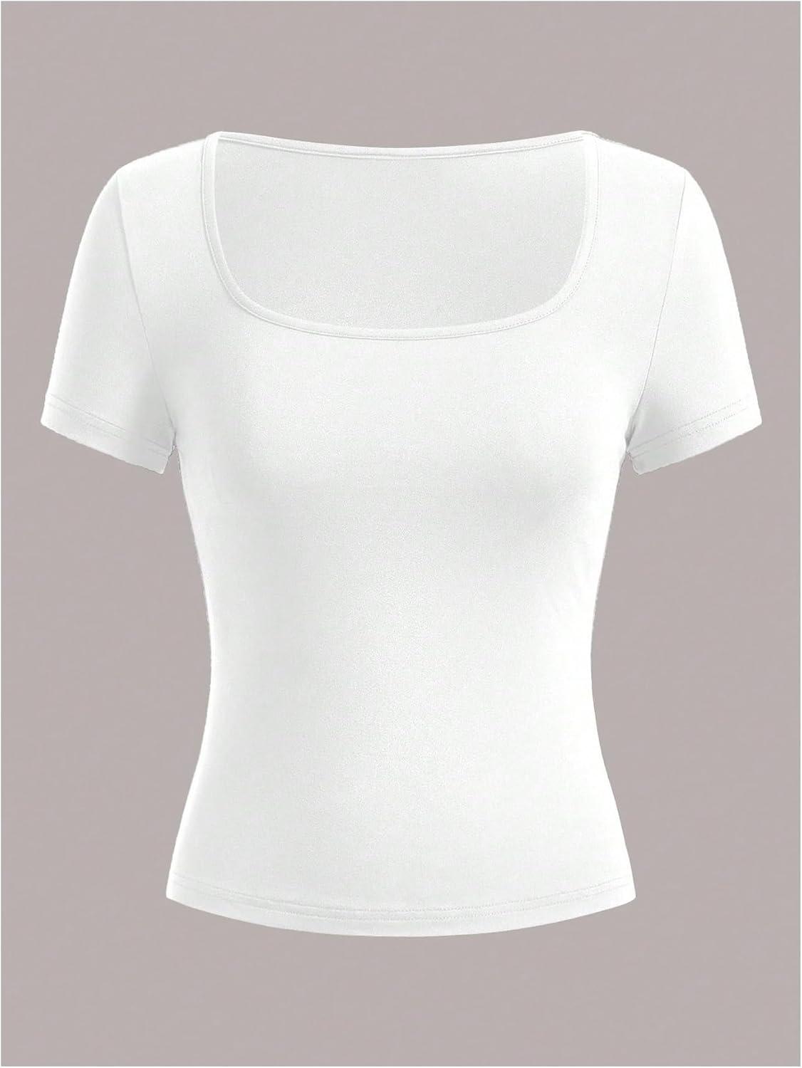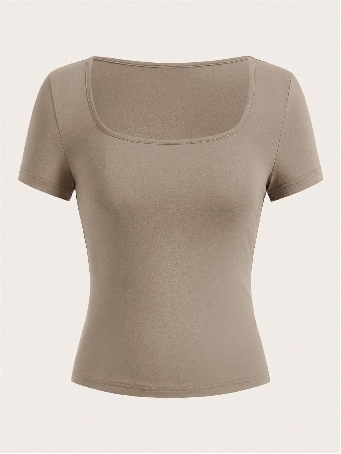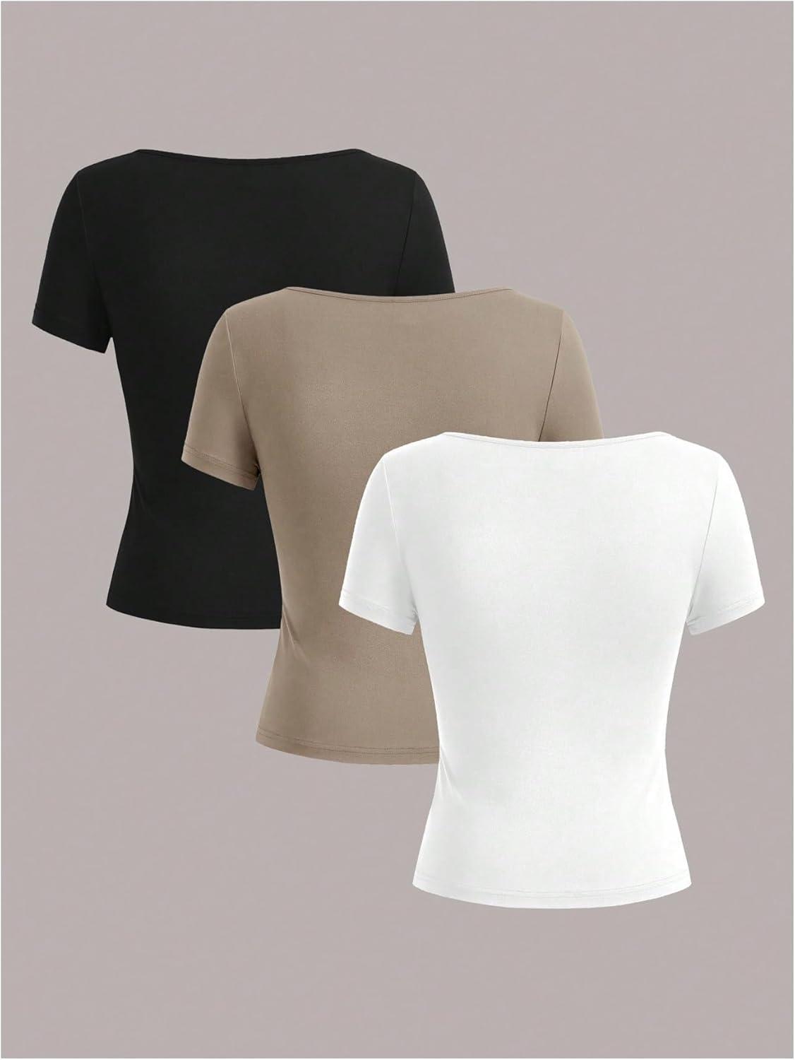 SOLY HUX Women’s 3 Piece Square Neck T Shirts Summer Short Sleeve Fitted Dressy Casual Tops(Black Brown Apricot)