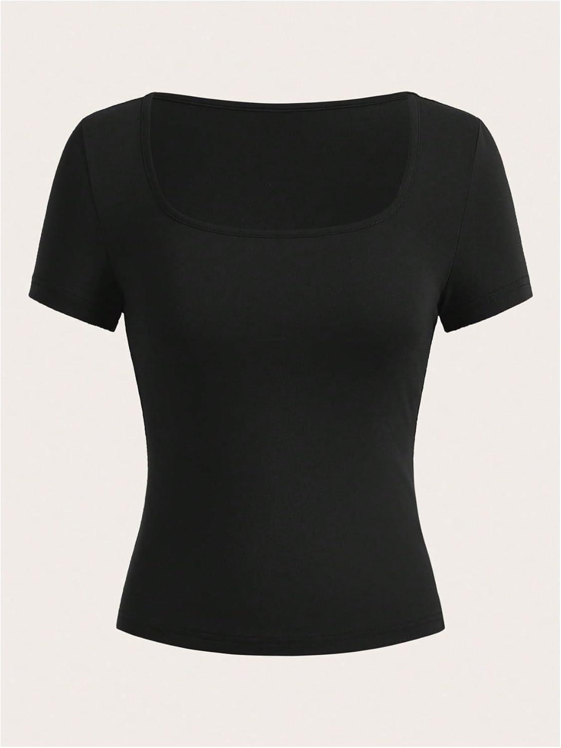 SOLY HUX Women’s 3 Piece Square Neck T Shirts Summer Short Sleeve Fitted Dressy Casual Tops(Multicolor Brown)