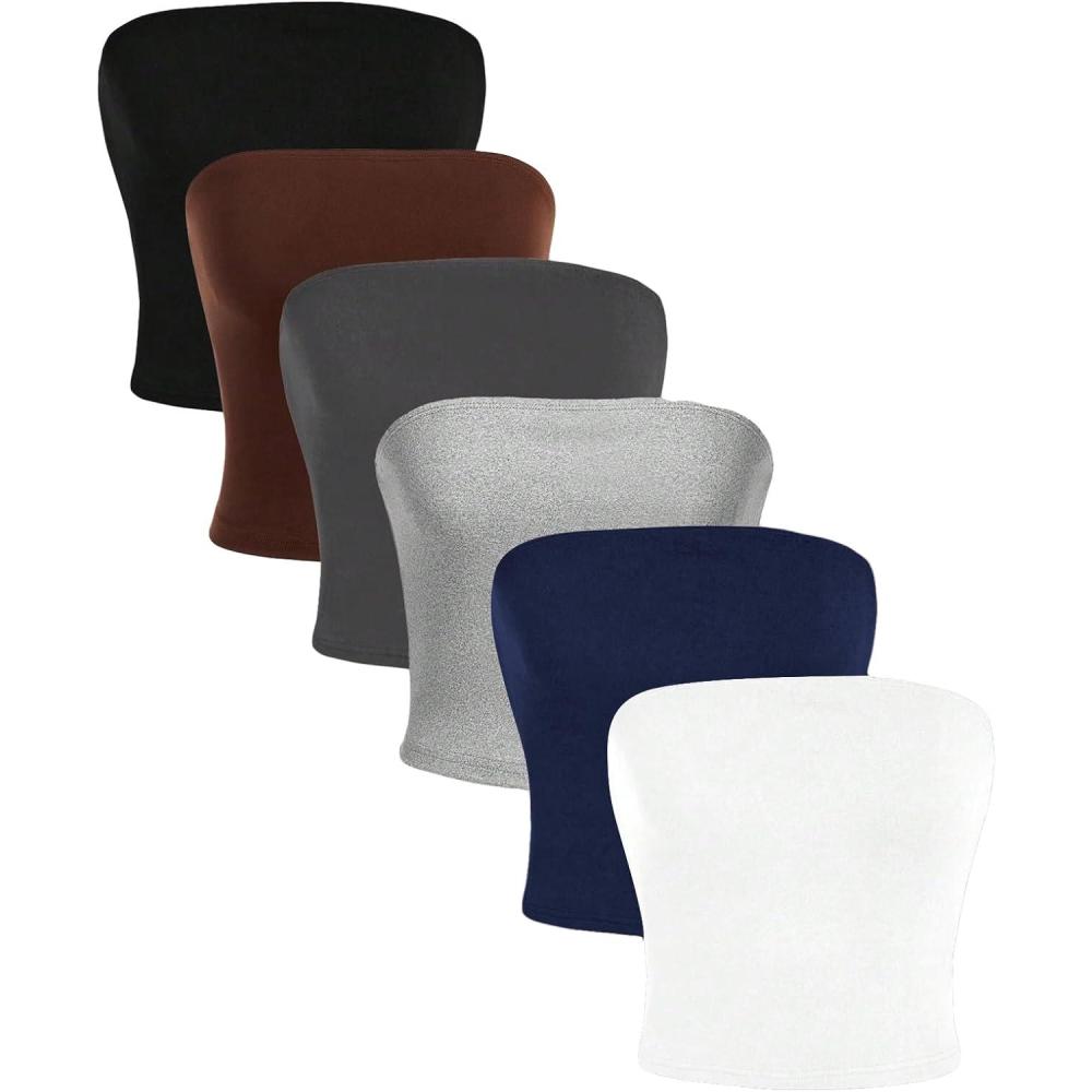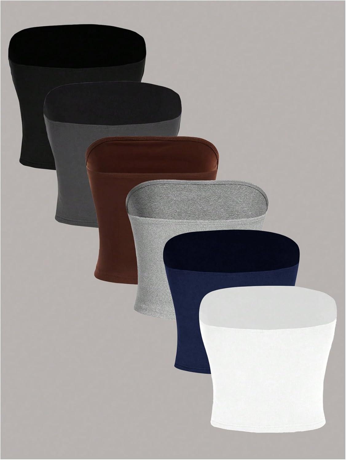 SOLY HUX Women’s 6 Piece Tube Top Strapless Sleeveless Slim Fit Solid Bandeau Crop Tops(Multicolor)