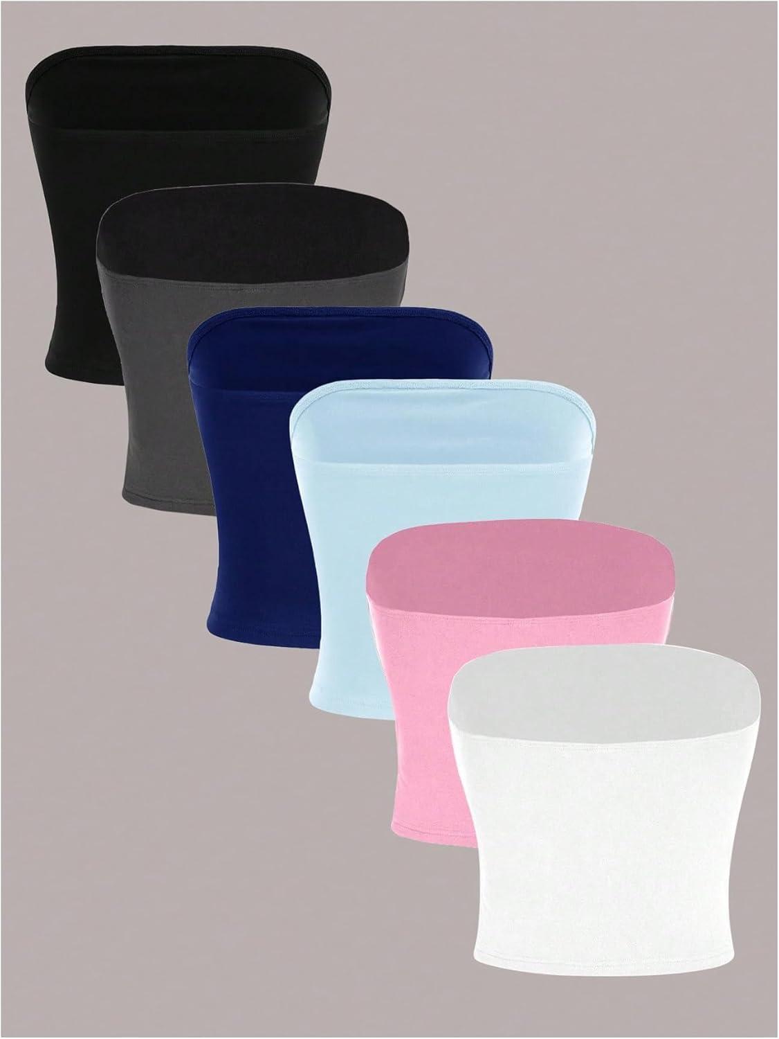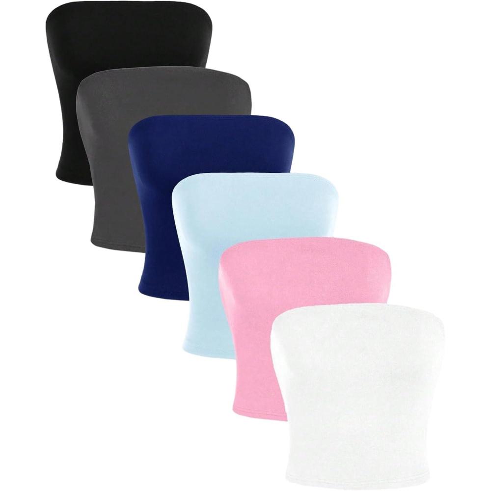 SOLY HUX Women’s 6 Piece Tube Top Strapless Sleeveless Slim Fit Solid Bandeau Crop Tops(Multicolor Pure)