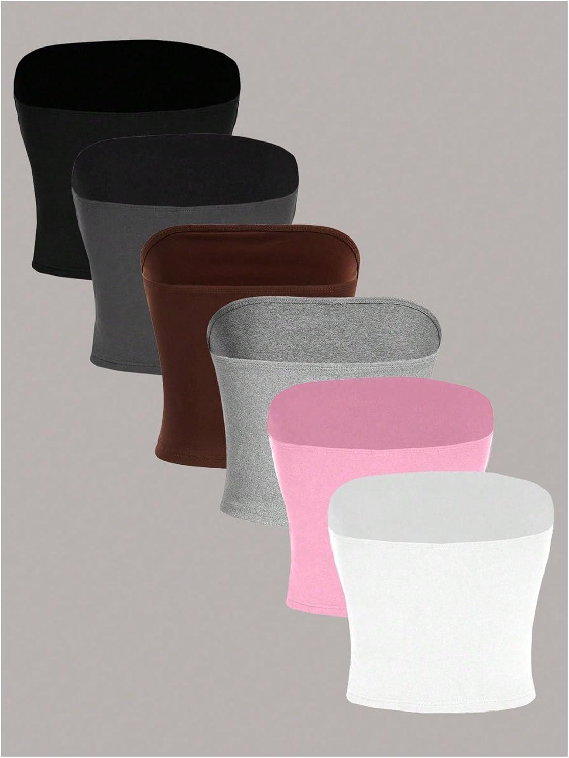 SOLY HUX Women’s 6 Piece Tube Top Strapless Sleeveless Slim Fit Solid Bandeau Crop Tops(Multicoloured Bow)