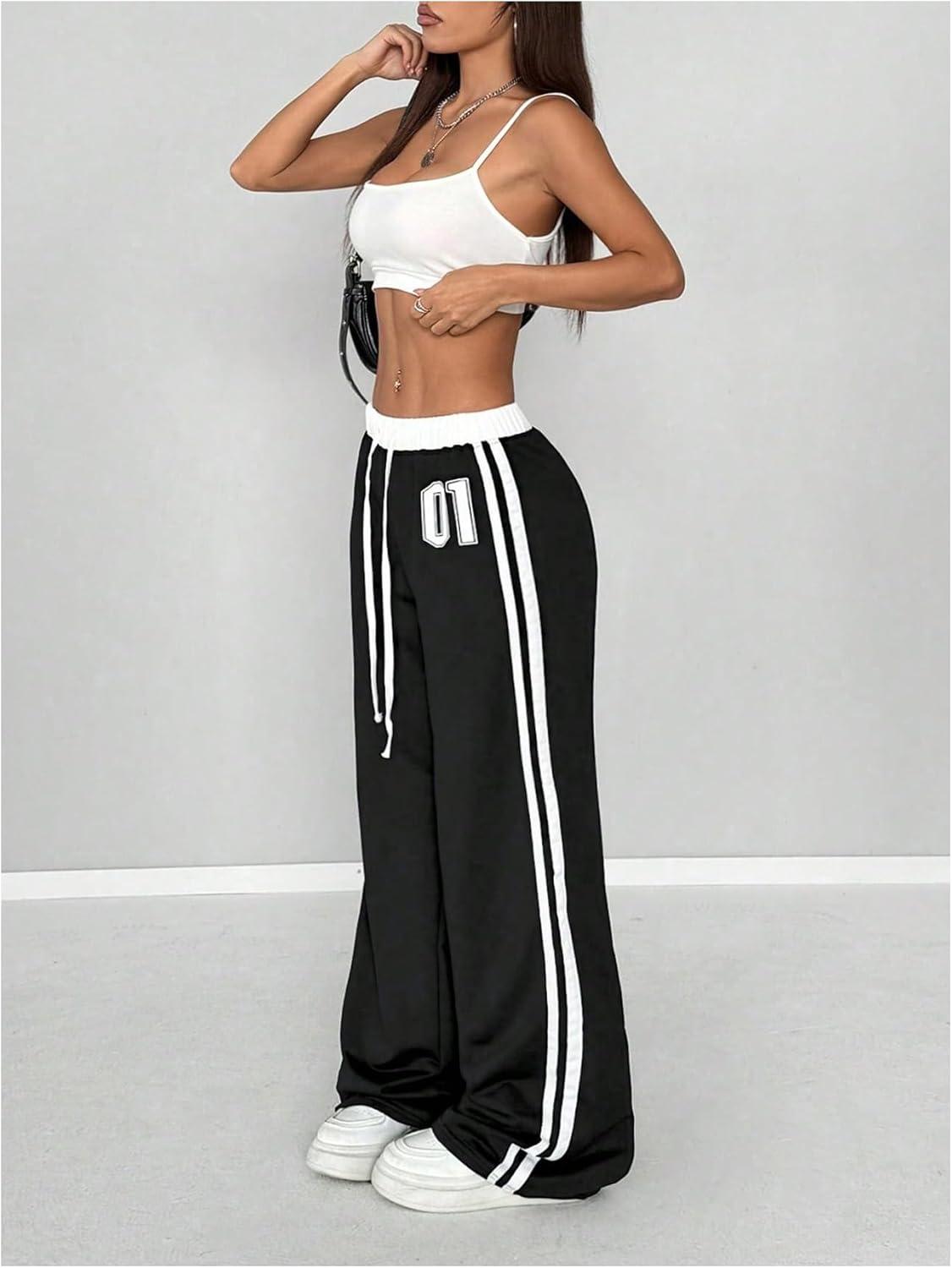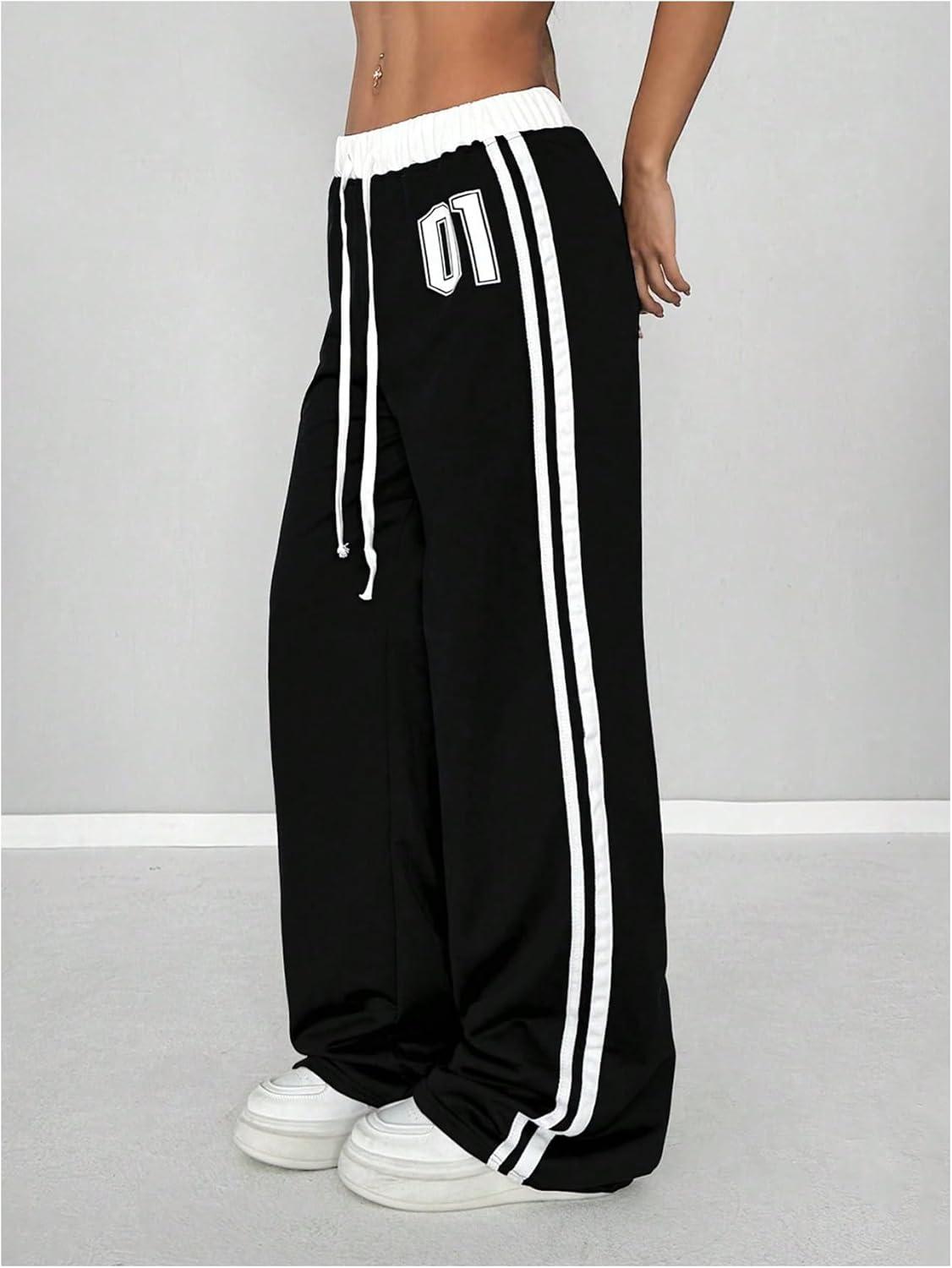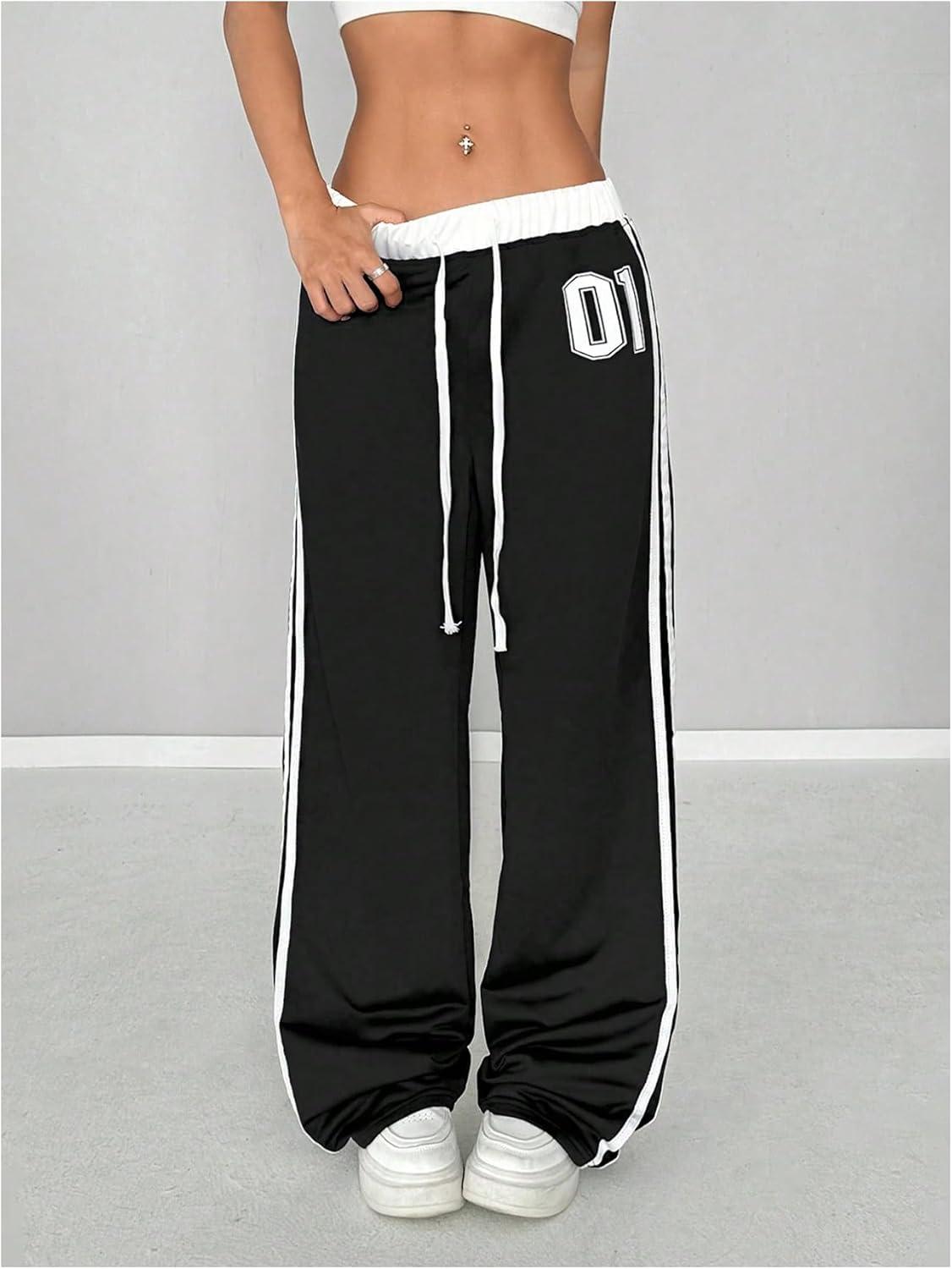 SOLY HUX Women’s Baggy Sweatpants Wide Leg Ed Hardy Sweatpant Y2k Drawstring Pants Streetwear(Black Printed)