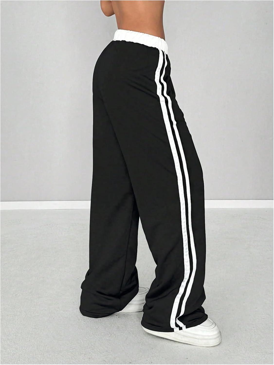 SOLY HUX Women’s Drawstring Sweatpants Elastic Low Rise Baggy Straight Leg Casual Pants with Pockets(Pure Dark Blue)