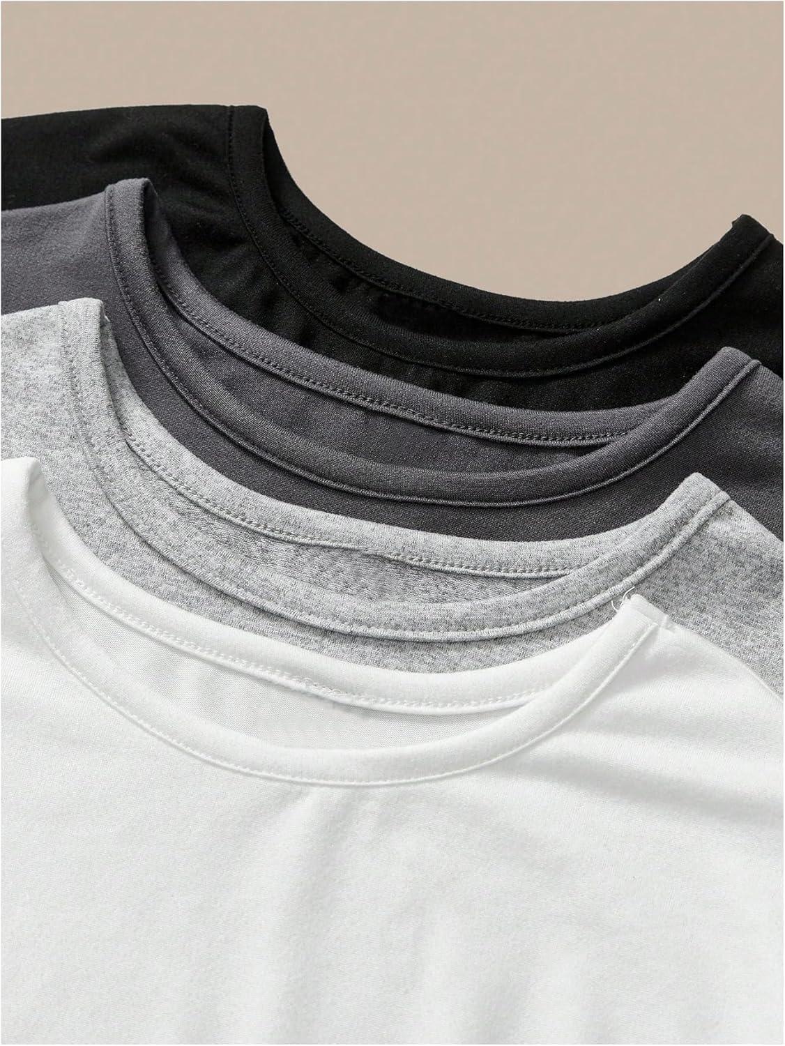 SOLY HUX Women’s Basic T-Shirts Crew Neck Short Sleeve Fitted Tees 4 Packs Crop Tops(Black Grey White)