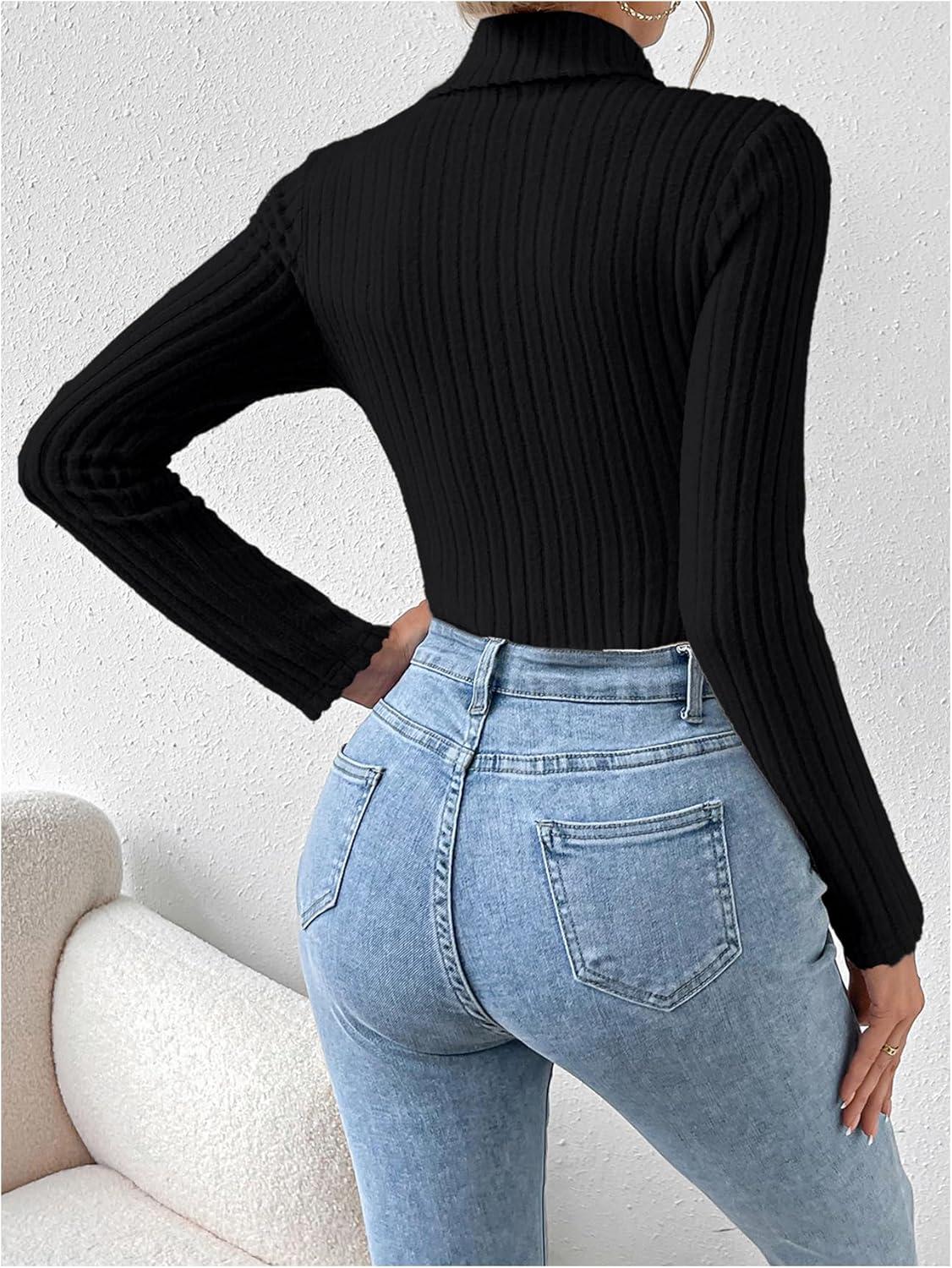 SOLY HUX Women’s Bodysuit Turtleneck Long Sleeve Solid Bodysuit T Shirt Tops(Pure Black)