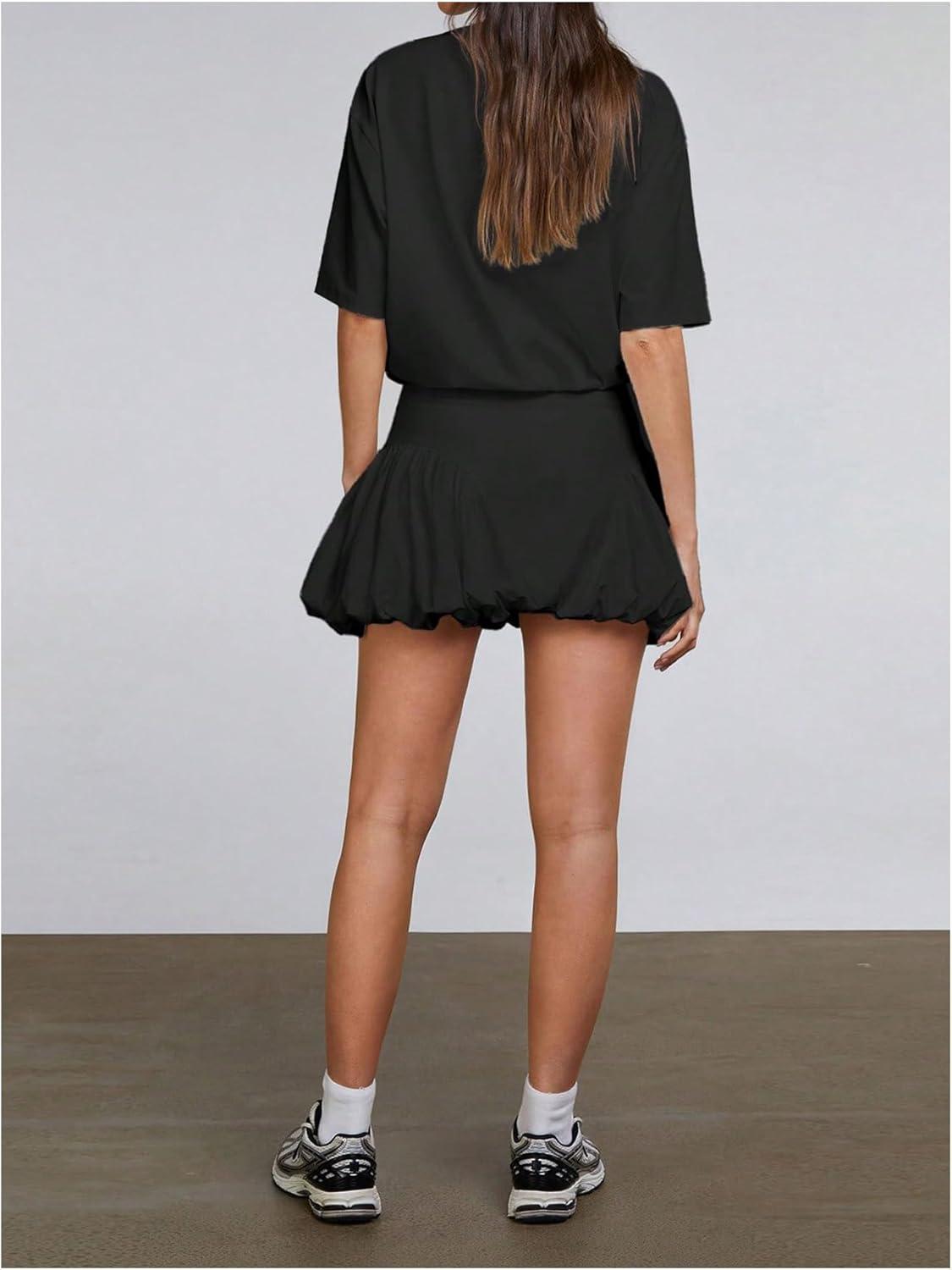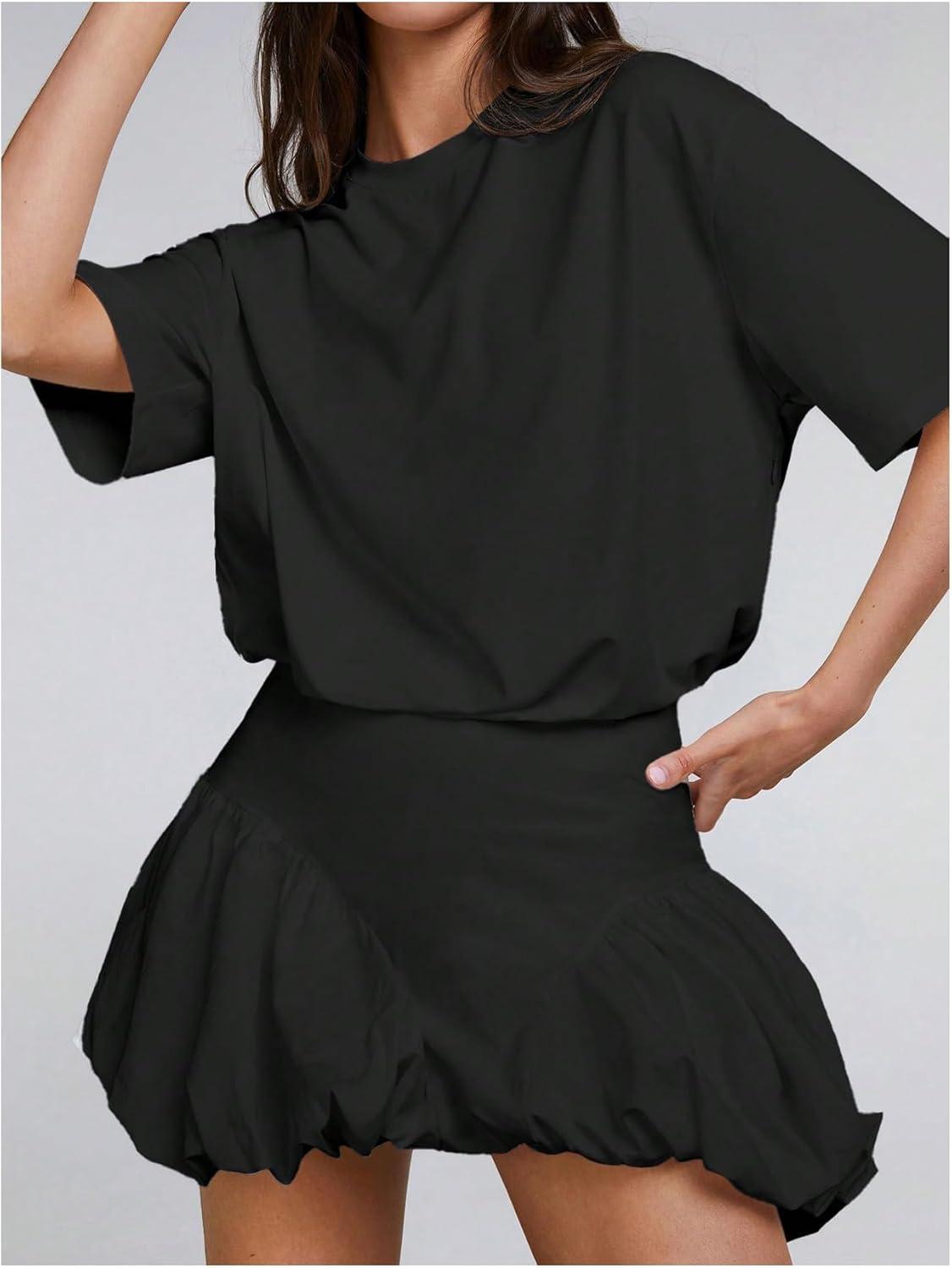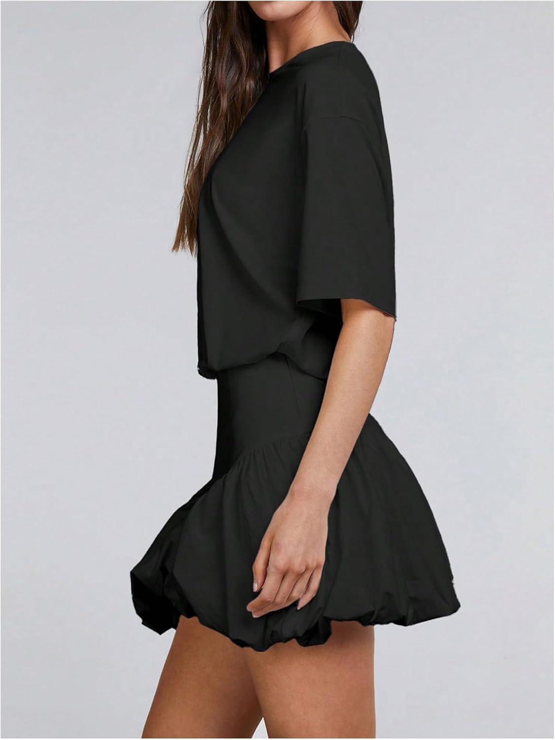 SOLY HUX Women’s Bubble Mini Dress Short Sleeve Crewneck A Line Y2k Going Out Summer Dresses(Plain Black)