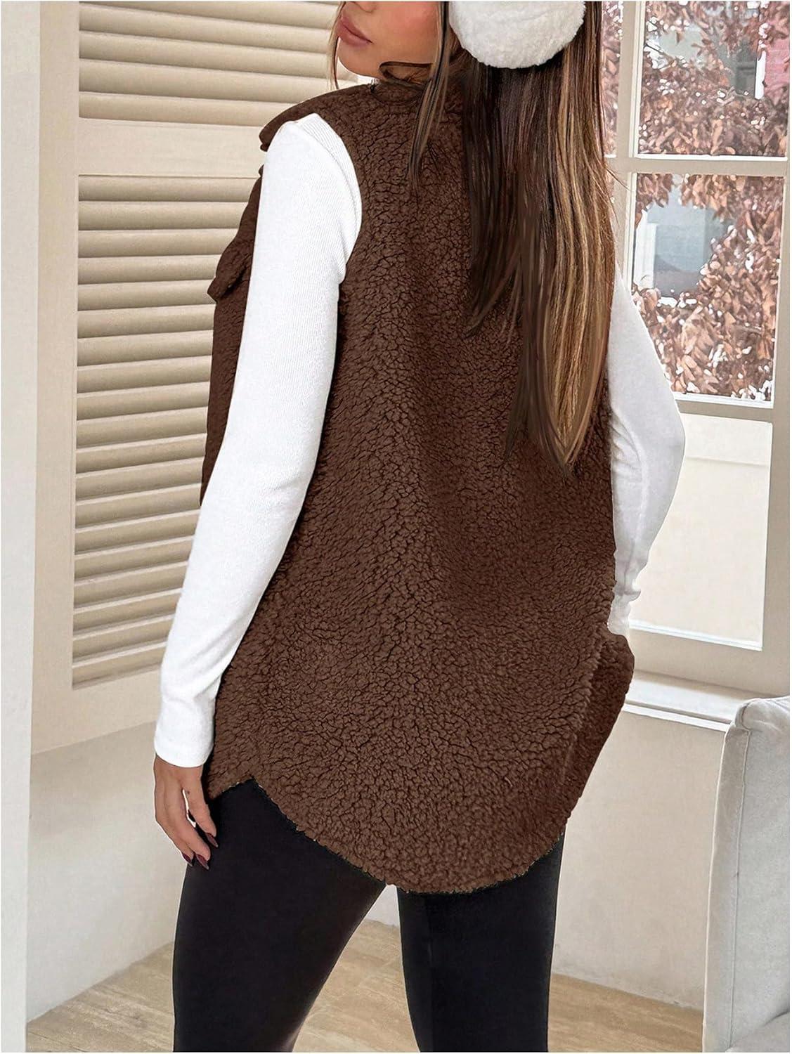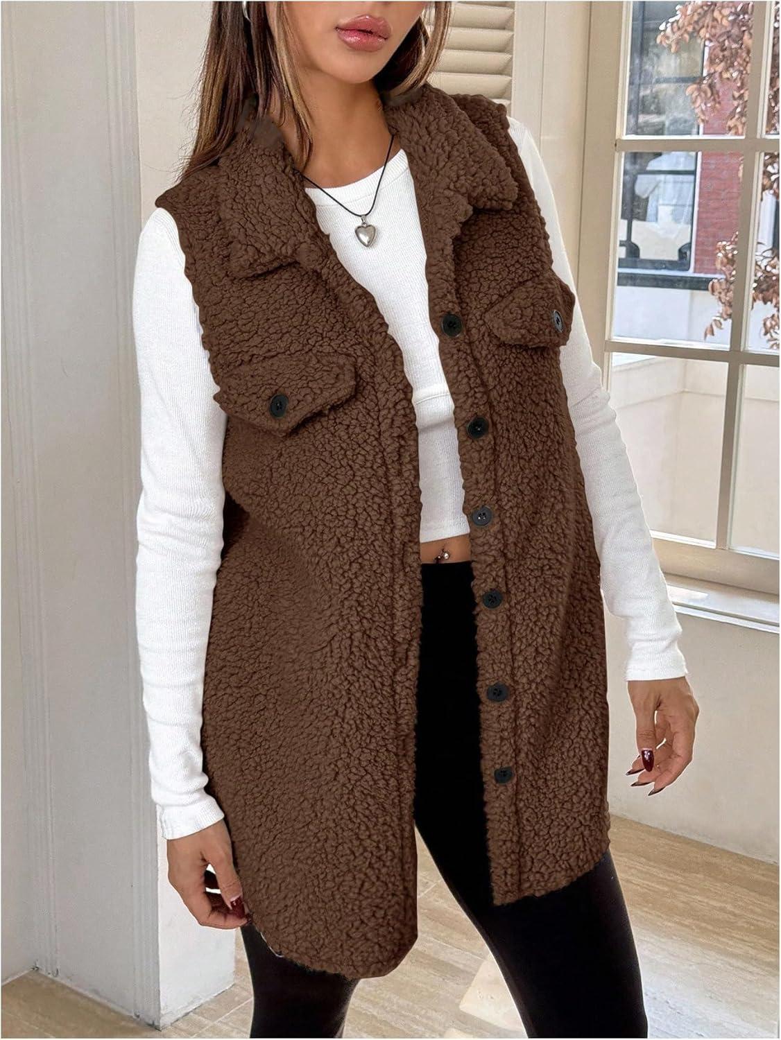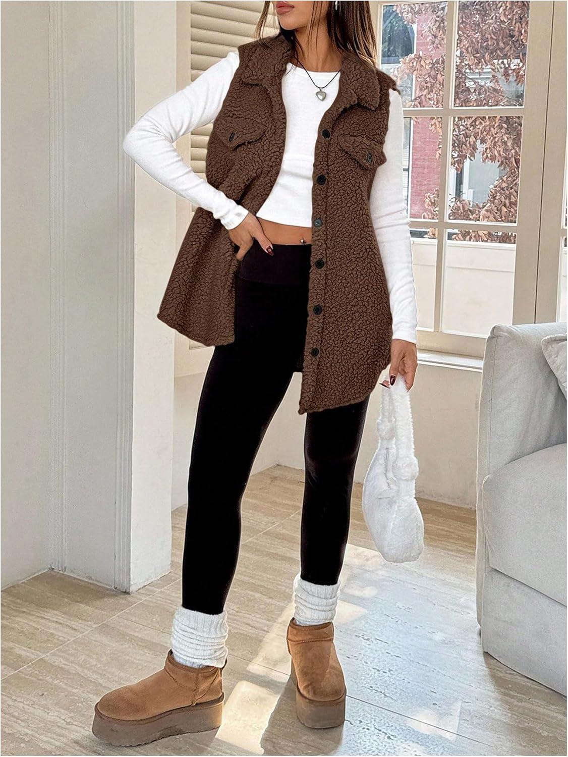 SOLY HUX Women’s Button Down Fleece Outerwear Vest Sleeveless Teddy Jacket Coat Fall Winter Clothes(Coffee Brown)