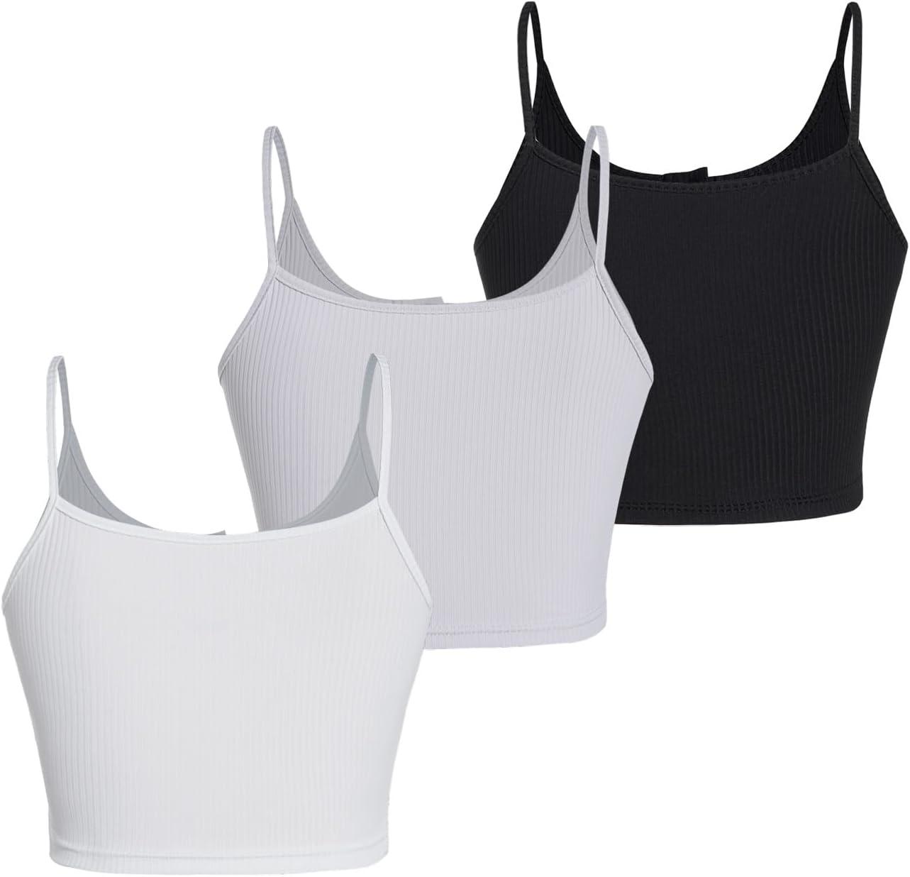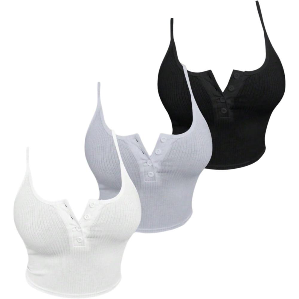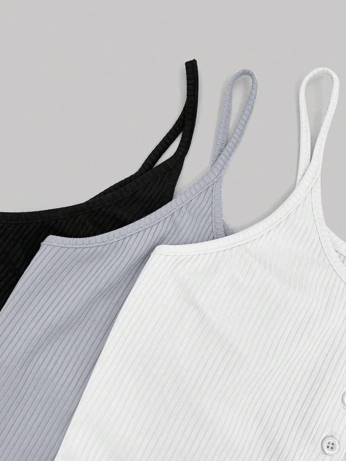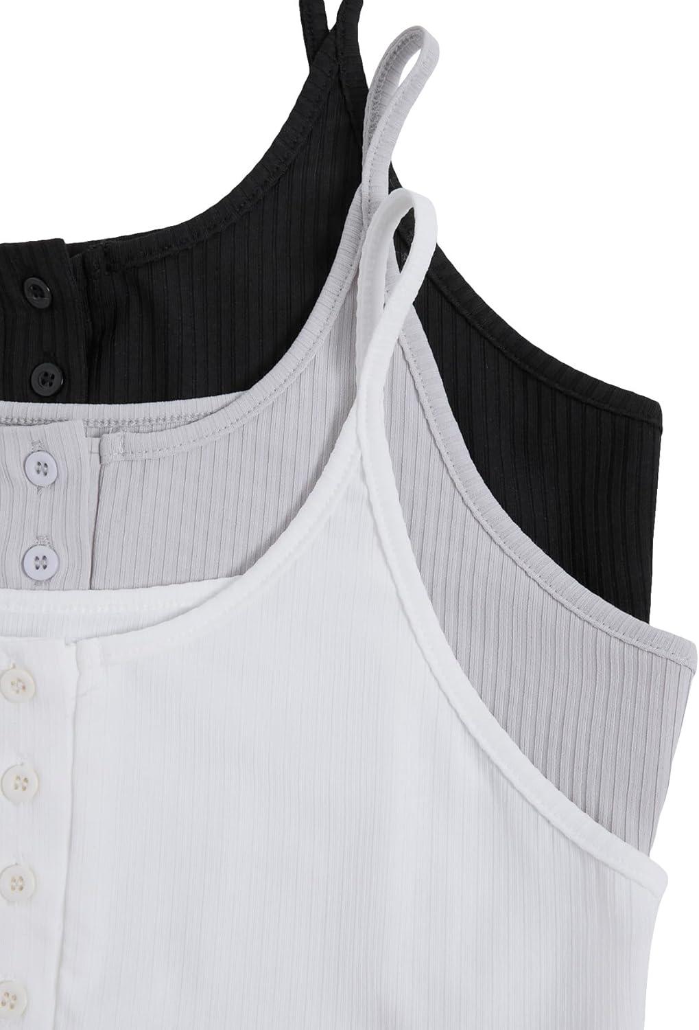 SOLY HUX Women’s Button Down Ribbed Cami Top 3 Piece Spaghetti Strap Sexy Crop Camisole Tops(Light Grey White Black)