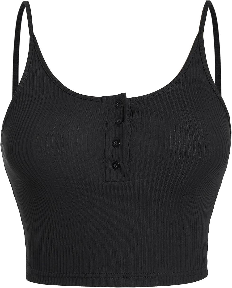 SOLY HUX Women’s Button Down Ribbed Cami Top 3 Piece Spaghetti Strap Sexy Crop Camisole Tops(White Burgundy Black)