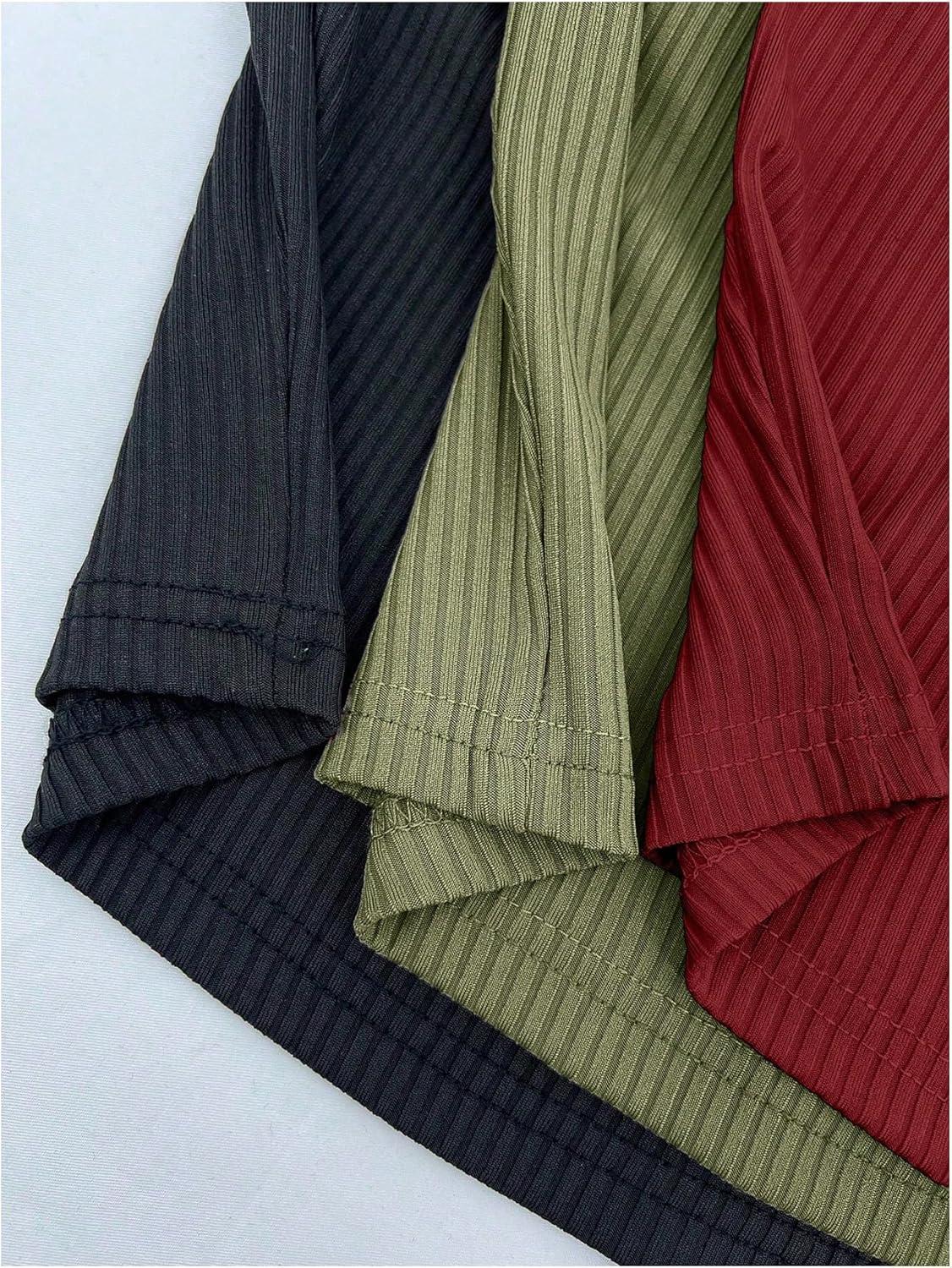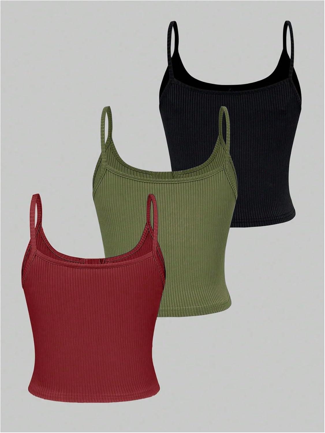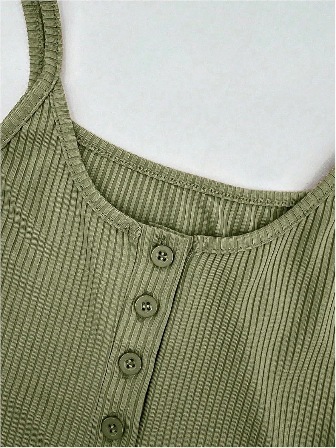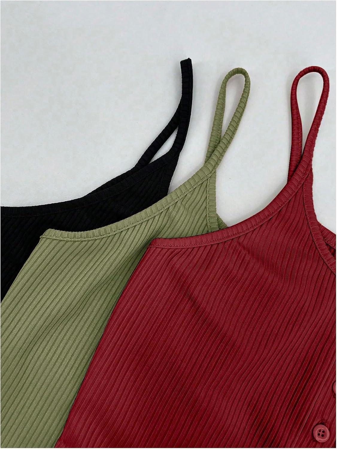 SOLY HUX Women’s Button Down Ribbed Cami Top 3 Piece Spaghetti Strap Sexy Crop Camisole Tops(Red Army Green Black)