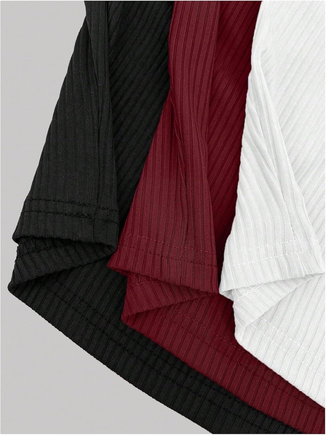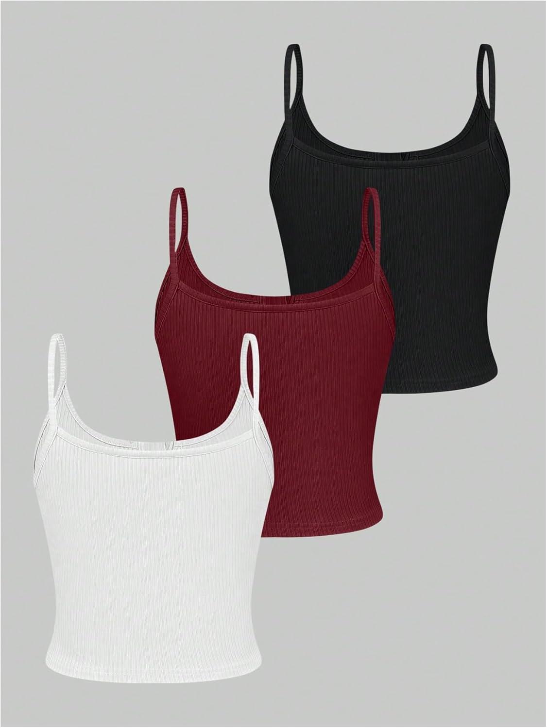 SOLY HUX Women’s Button Down Ribbed Cami Top 3 Piece Spaghetti Strap Sexy Crop Camisole Tops(White Burgundy Black)