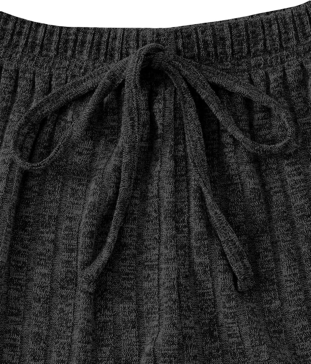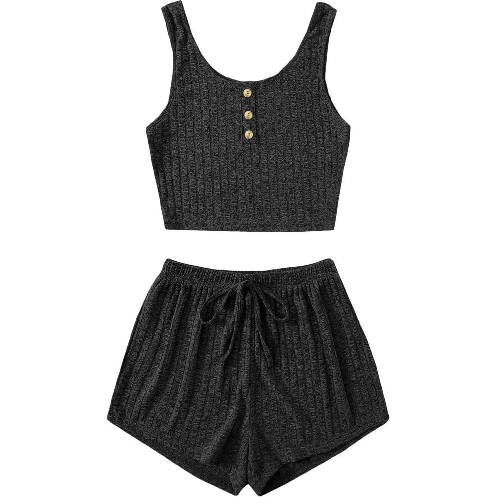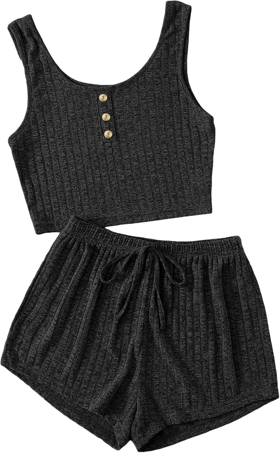SOLY HUX Women’s Button Front Ribbed Knit Tank Top and Shorts Pajama Set Sleepwear Lounge Sets(Plain Black)