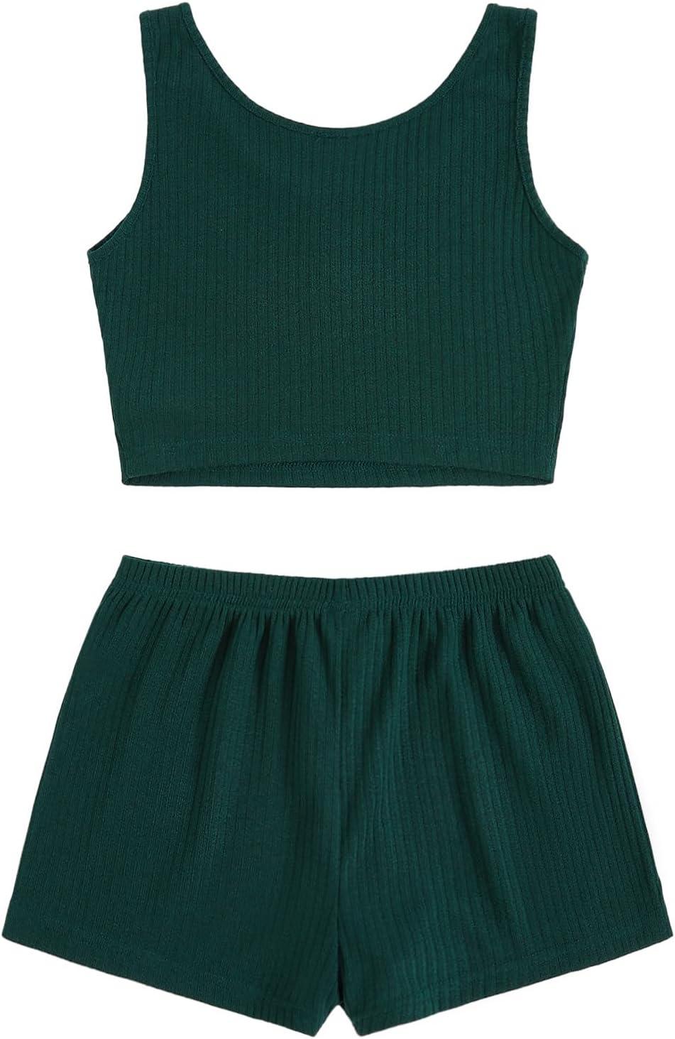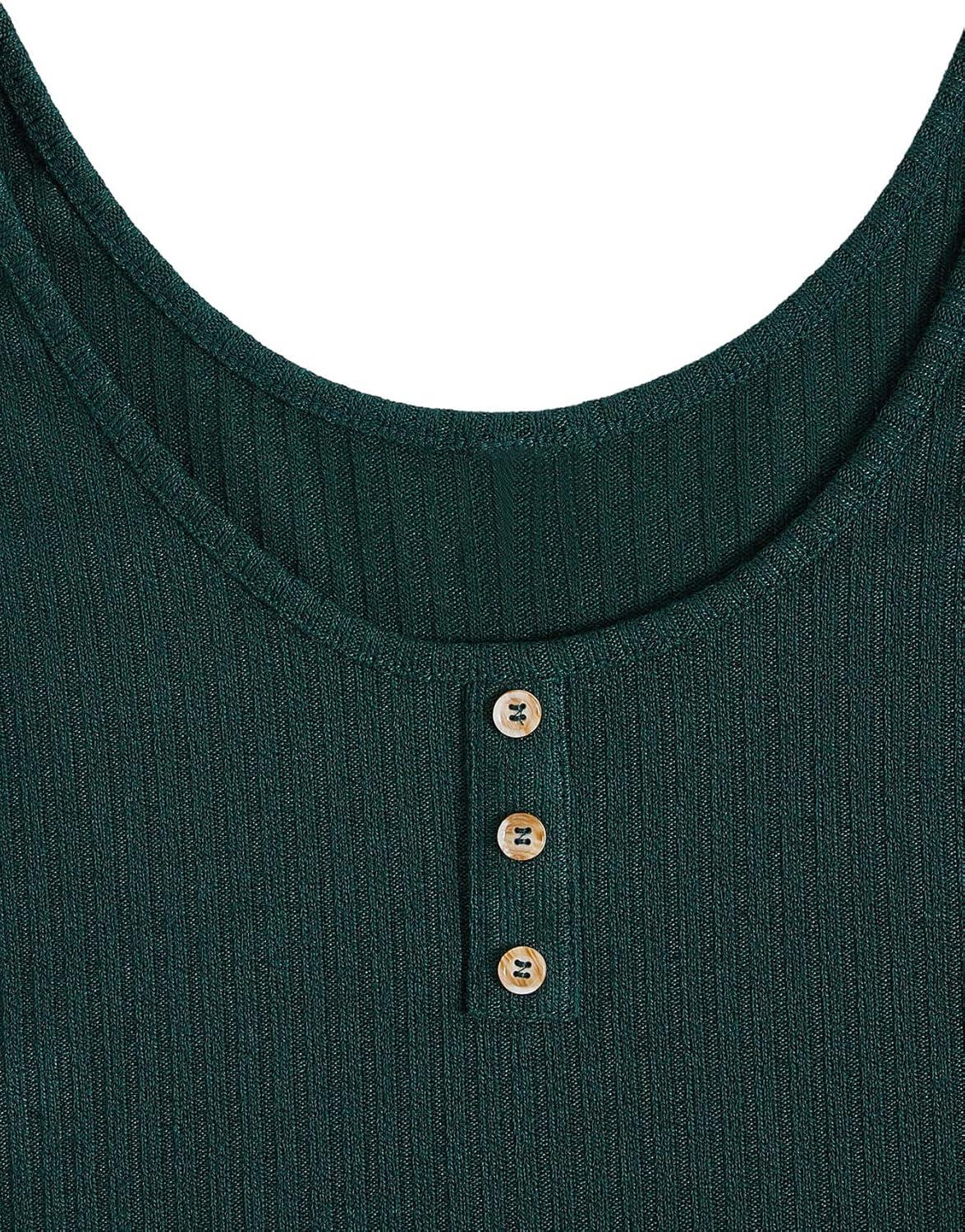 SOLY HUX Women’s Button Front Ribbed Knit Tank Top and Shorts Pajama Set Sleepwear Lounge Sets(Plain Dark Green)
