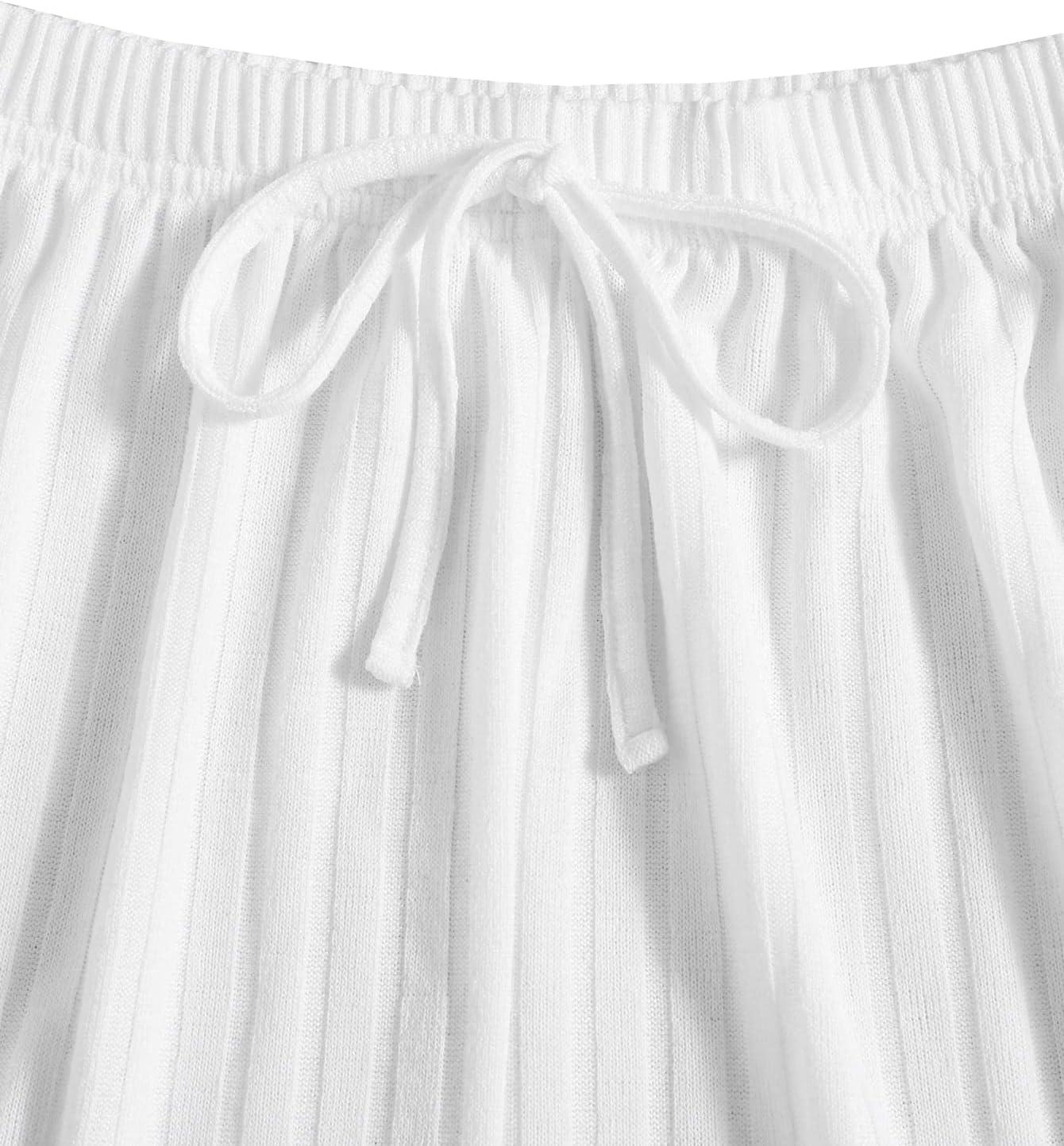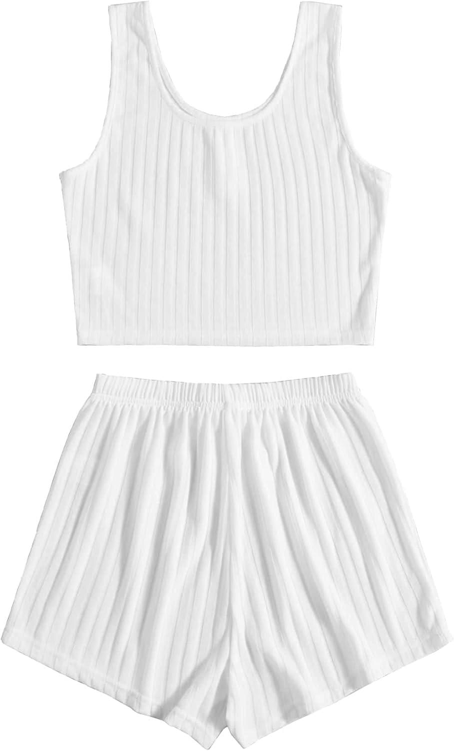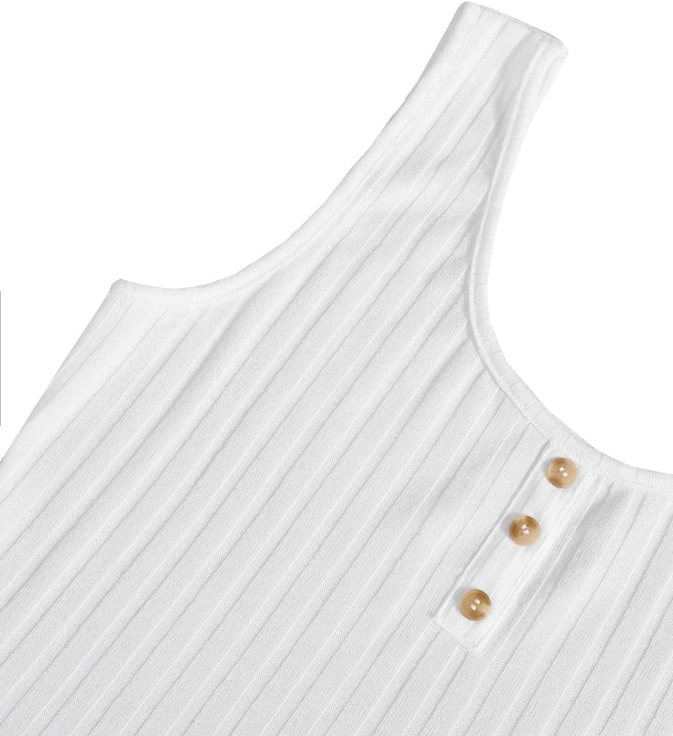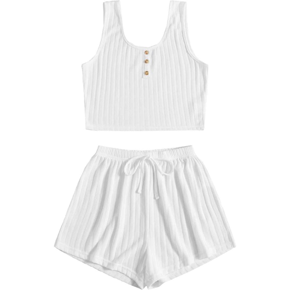 SOLY HUX Women’s Button Front Ribbed Knit Tank Top and Shorts Pajama Set Sleepwear Lounge Sets(Plain White)