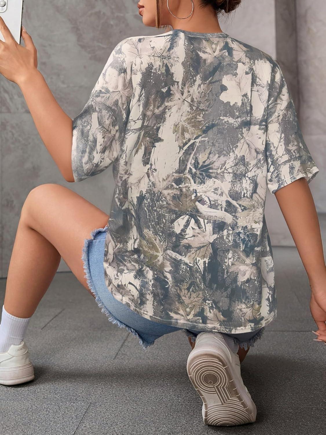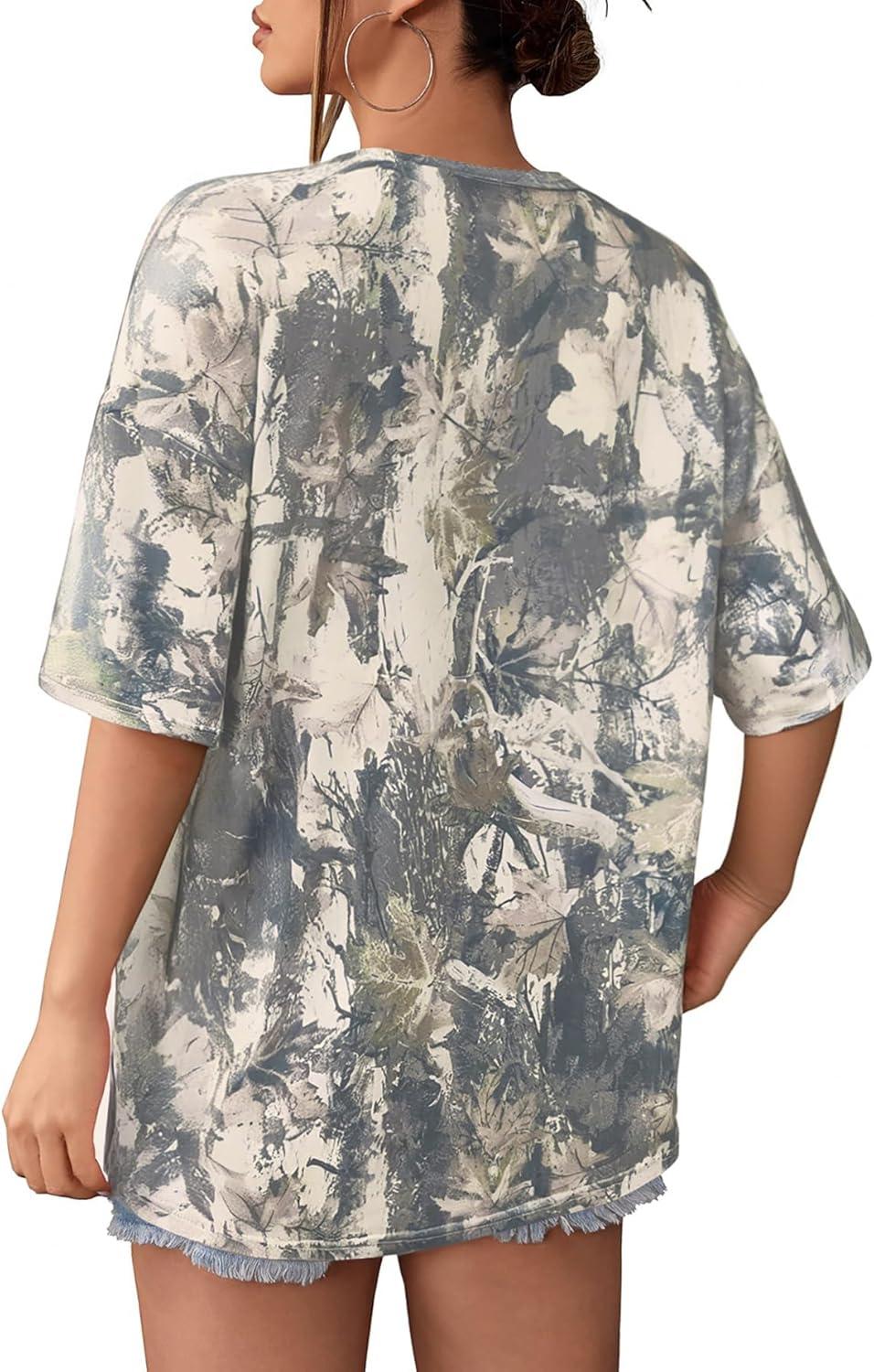SOLY HUX Women’s Camo Print T Shirts Loose Short Sleeve Crew Neck Drop Shoulder Tee Tops Streetwear(Green Camo)