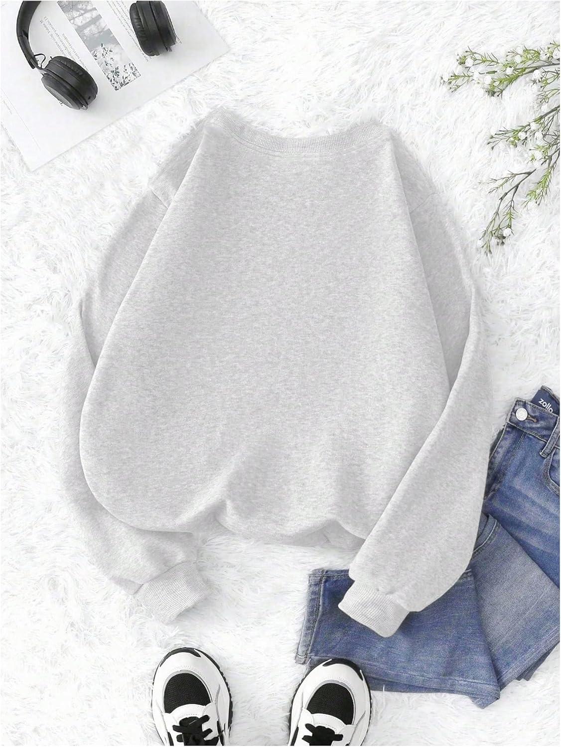 SOLY HUX Women’s Crewneck Graphic Sweatshirts Long Sleeve Oversized Loose Fit Shirts Drop Shoulder Pullover Casual Tops(White Letter)