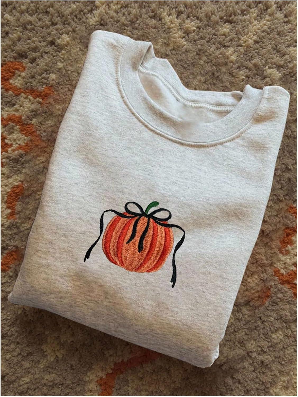 SOLY HUX Women’s Crewneck Graphic Sweatshirts Long Sleeve Oversized Loose Fit Shirts Drop Shoulder Pullover Casual Tops(Light Grey Pumpkin)