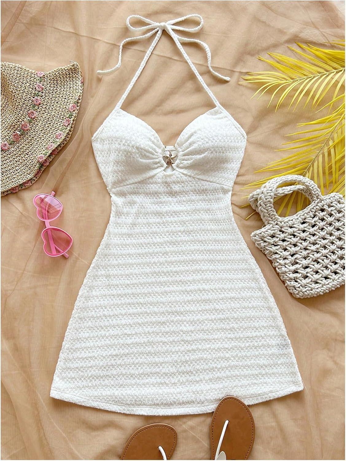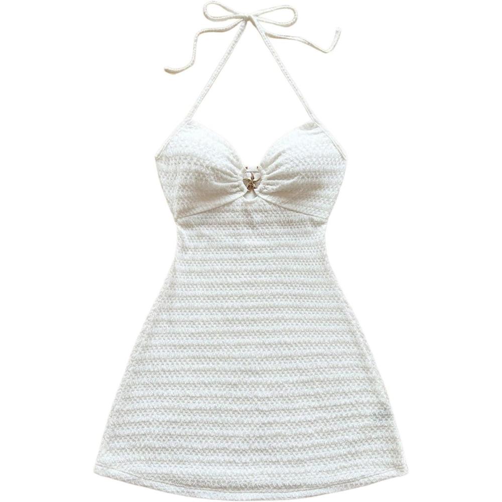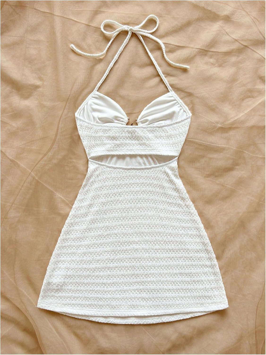 SOLY HUX Women’s Cut Out Tie Backless Halter Dress Sleeveless Mini Beach Vacation Dresses(Solid White)