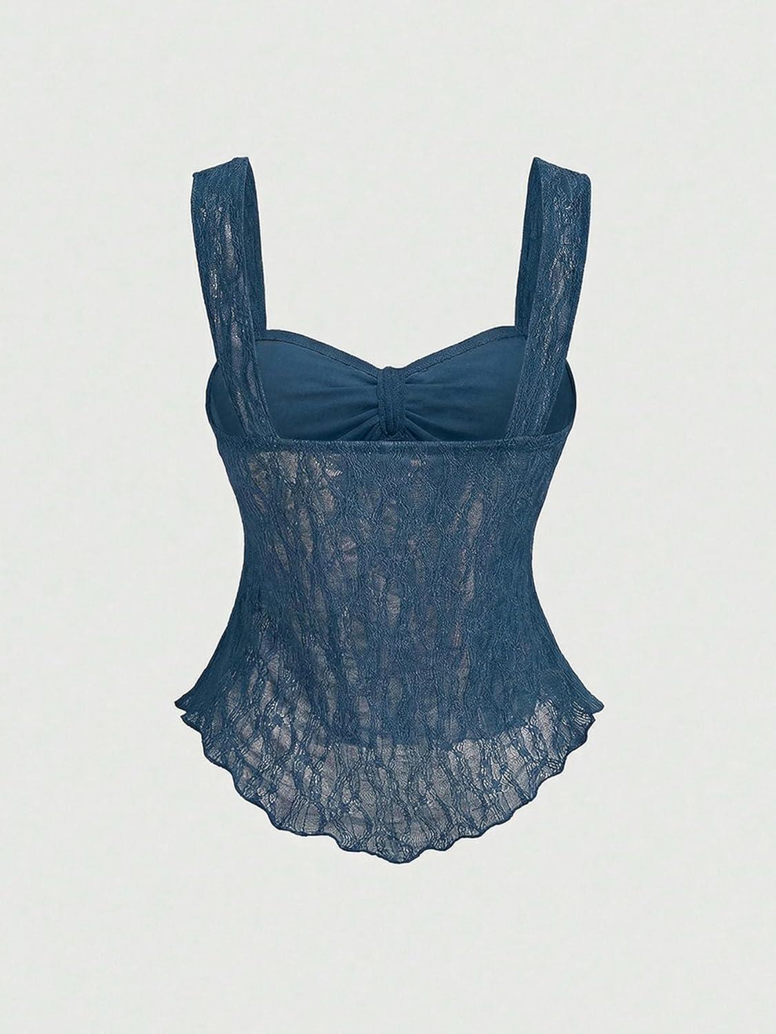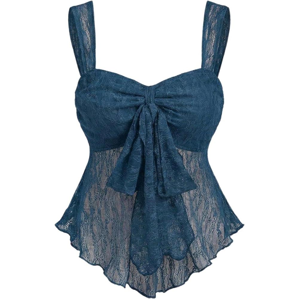 SOLY HUX Women’s Cute Babydoll Tops Sleeveless Tie Front Lace Peplum Tank Top Summer Going Out Camisole Top(Plain Blue)