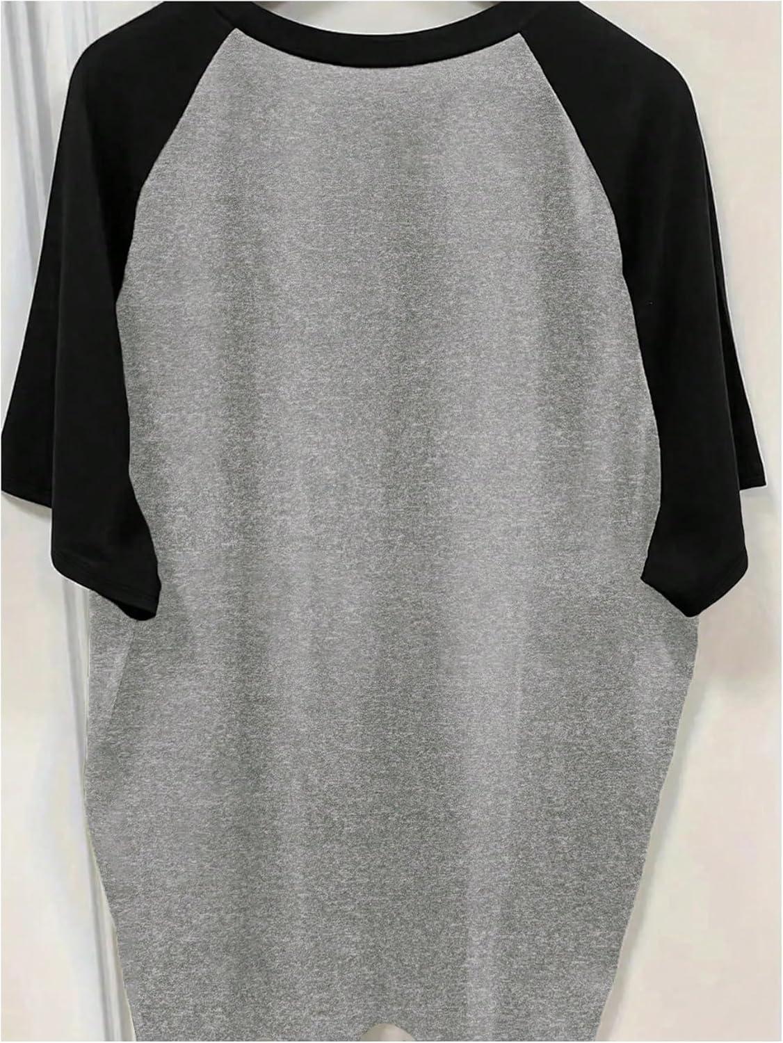SOLY HUX Women’s Cute Graphic T Shirts Preppy Baggy Tees Raglan Sleeve Aesthetic Oversized Tops Streetwear(Grey Black Multi)