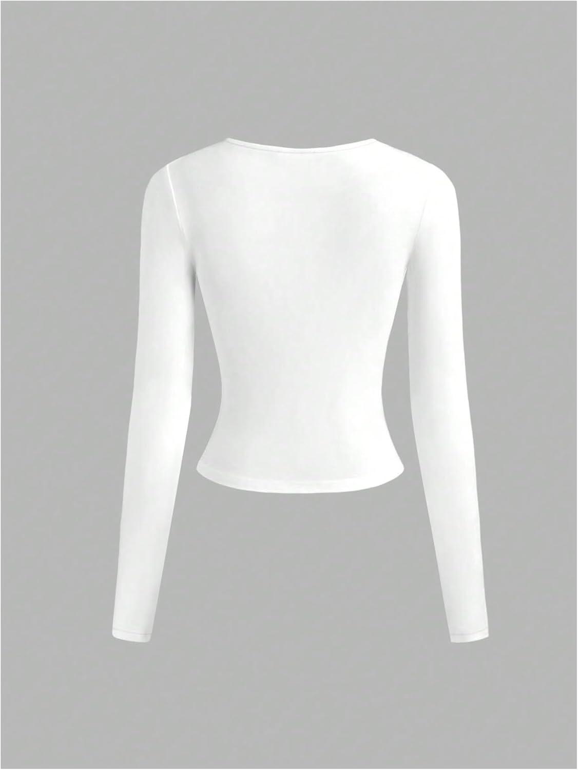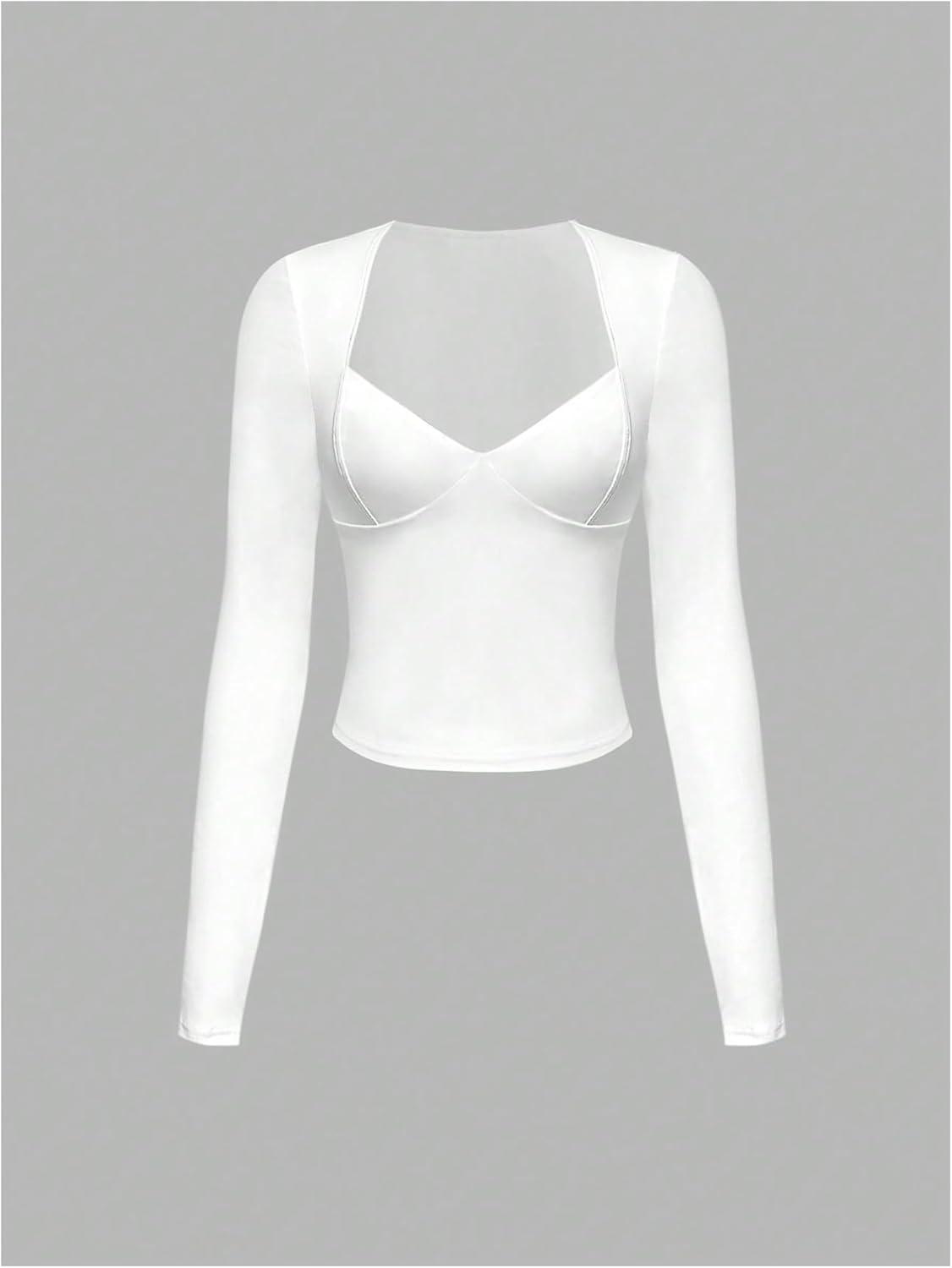 SOLY HUX Women’s Deep V Neck Long Sleeve Cropped T Shirts Slim Fit Going Out Crop Tops(Plain White)