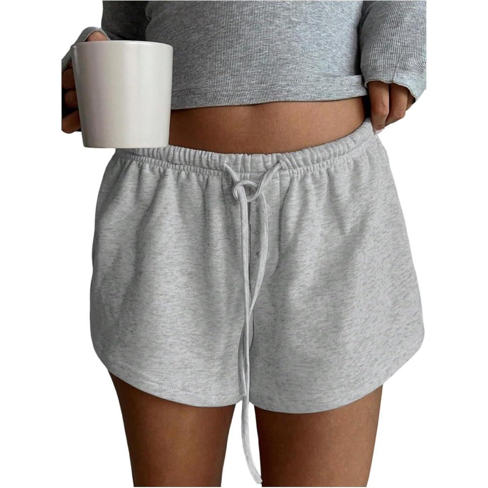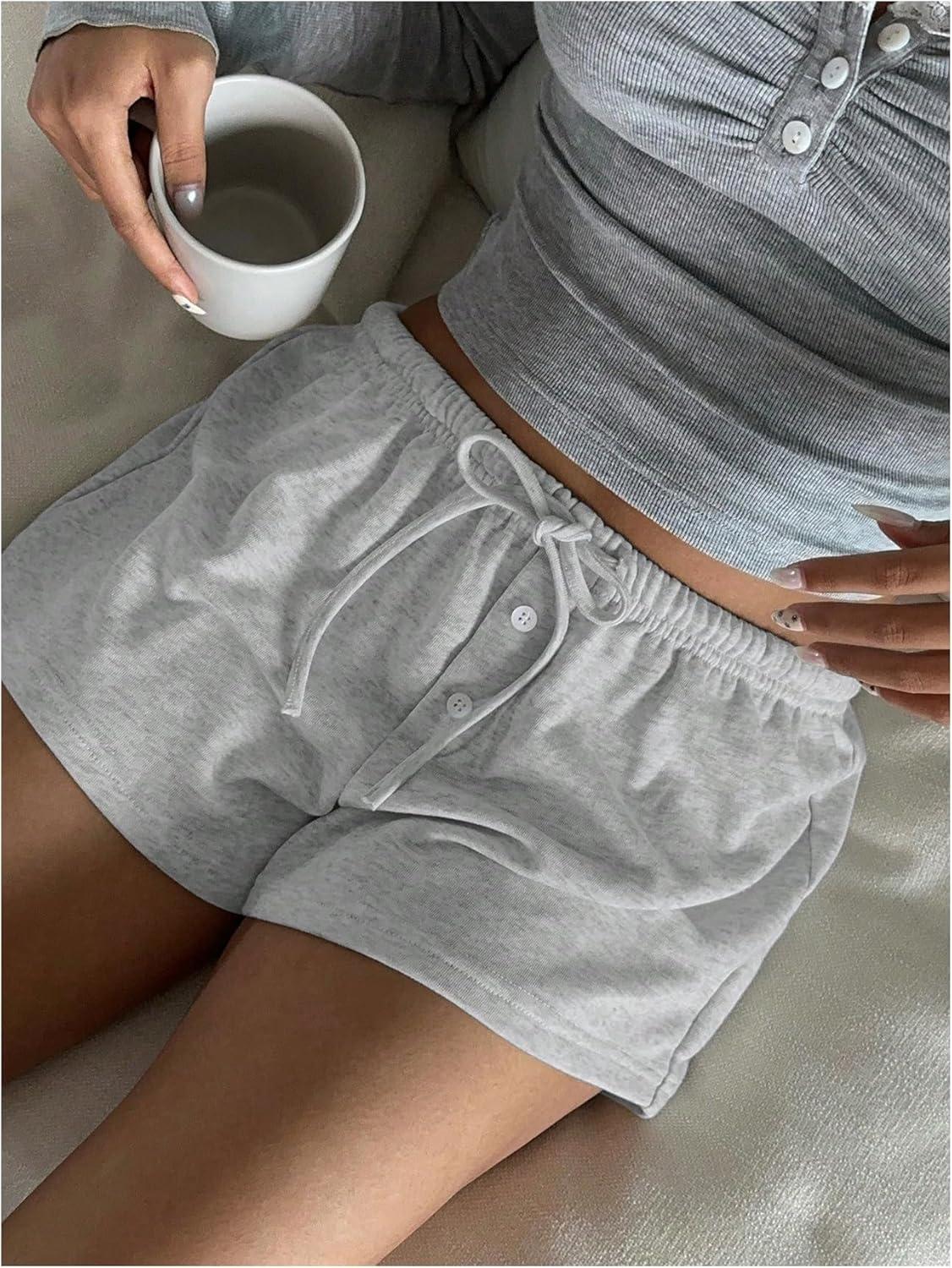 SOLY HUX Women’s Drawstring Waist Shorts Button Elastic Low Rise Casual Summer Shorts(Plain Grey)