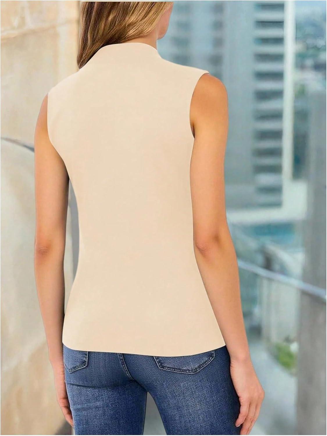 SOLY HUX Women’s Summer Tank Tops Mock Neck Sleeveless Asymmetrical Hem Casual Going Out Top(Plain Blue)