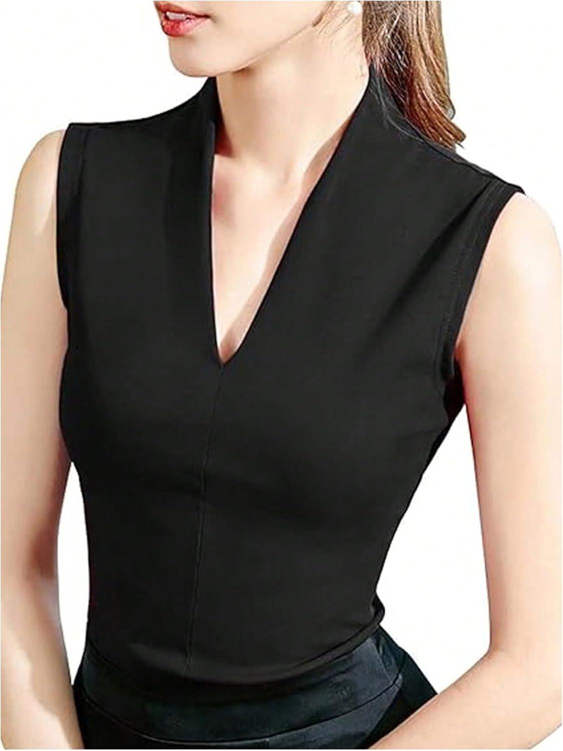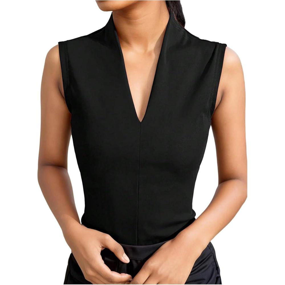 SOLY HUX Women’s Dressy Tank Tops V Neck Sleeveless Business Casual Work Office Tops(Pure Black)