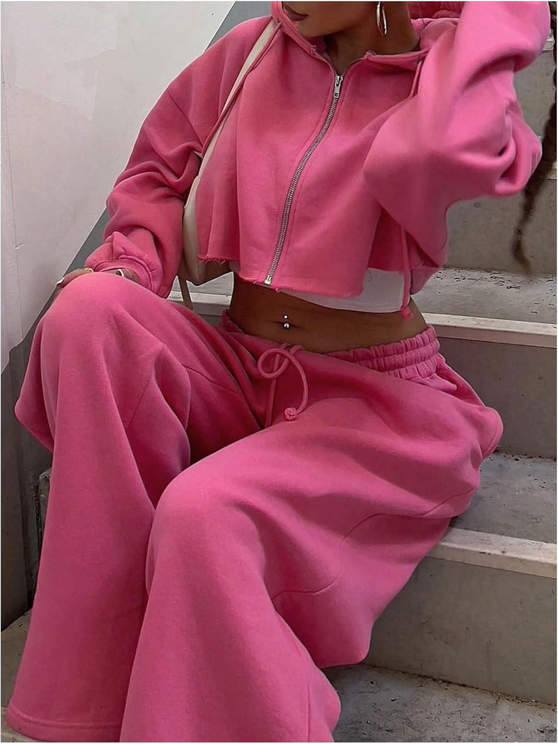 SOLY HUX Women’s Fall Clothes 2 Piece Sweatsuits Zip Up Crop Hoodies and Sweatpants Set Streetwear(Pure Pink)