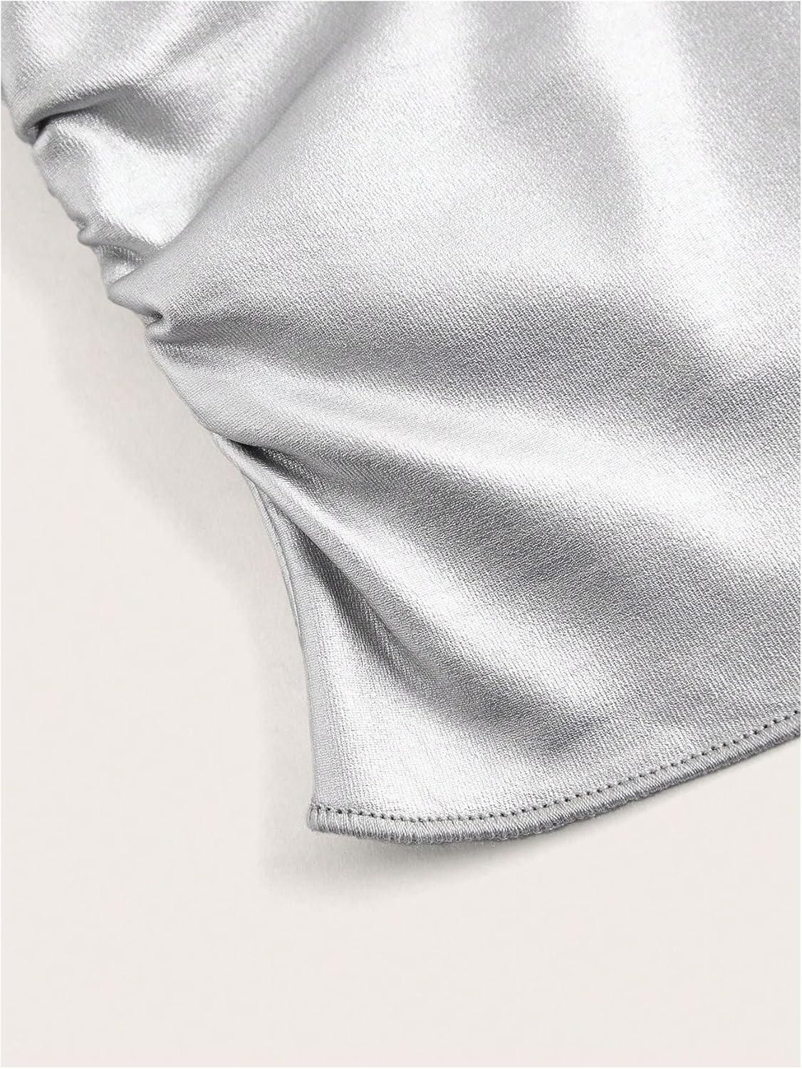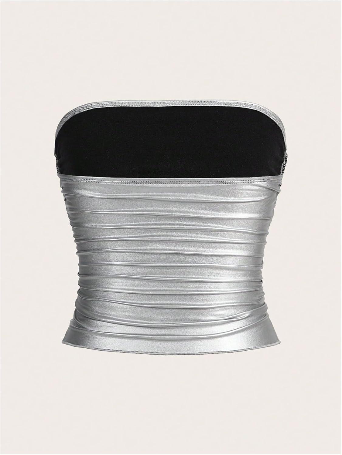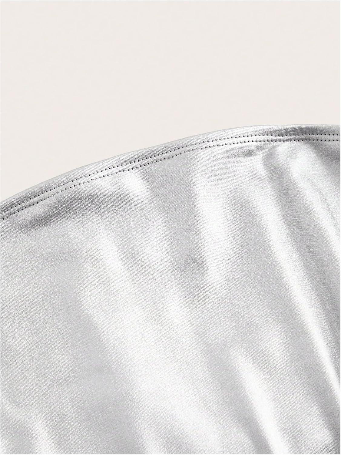 SOLY HUX Women’s Faux Leather Strapless Crop Tube Tops Going Out Bandeau Shirts Rave Concert Outfit(Solid Silver)