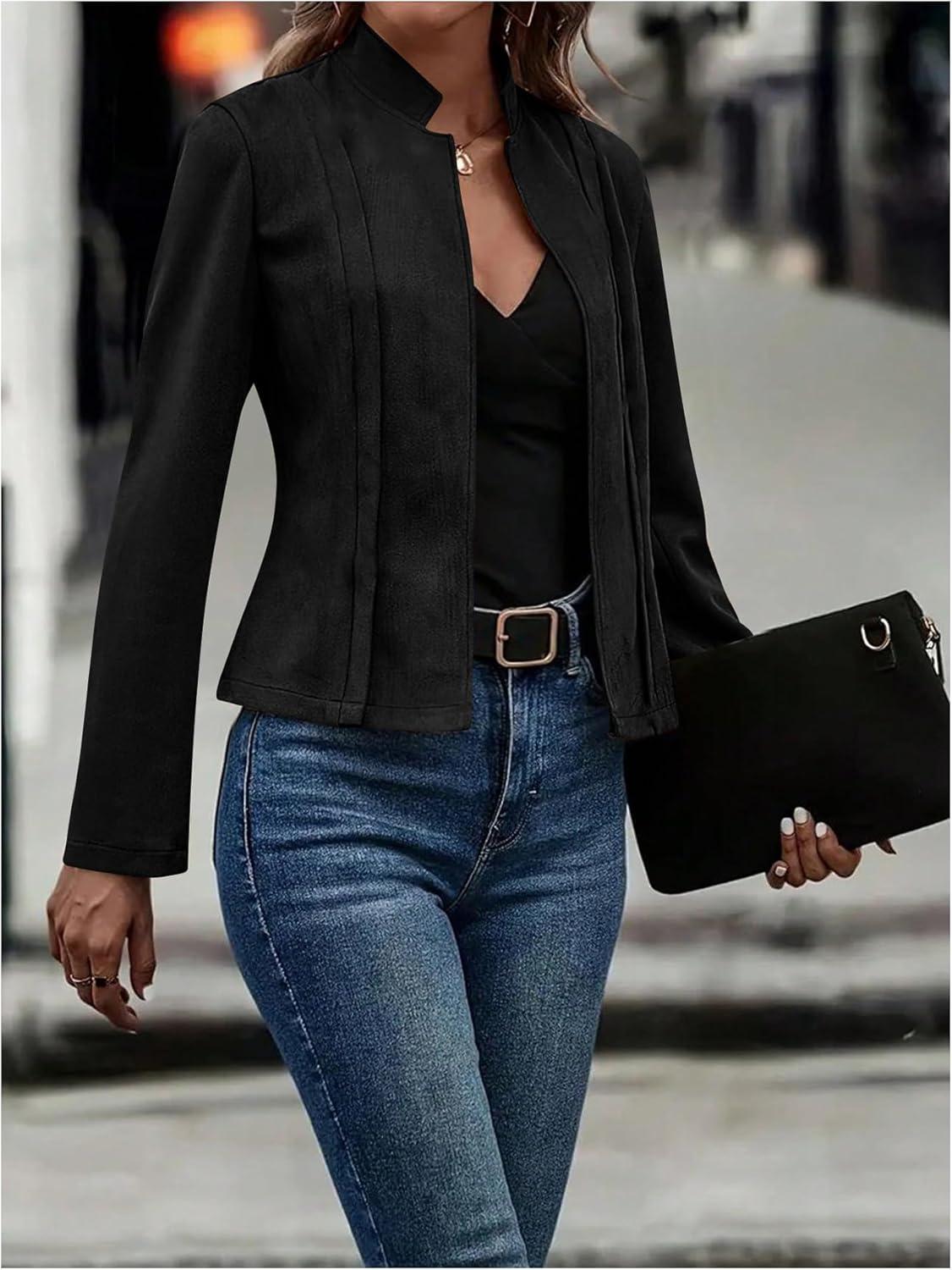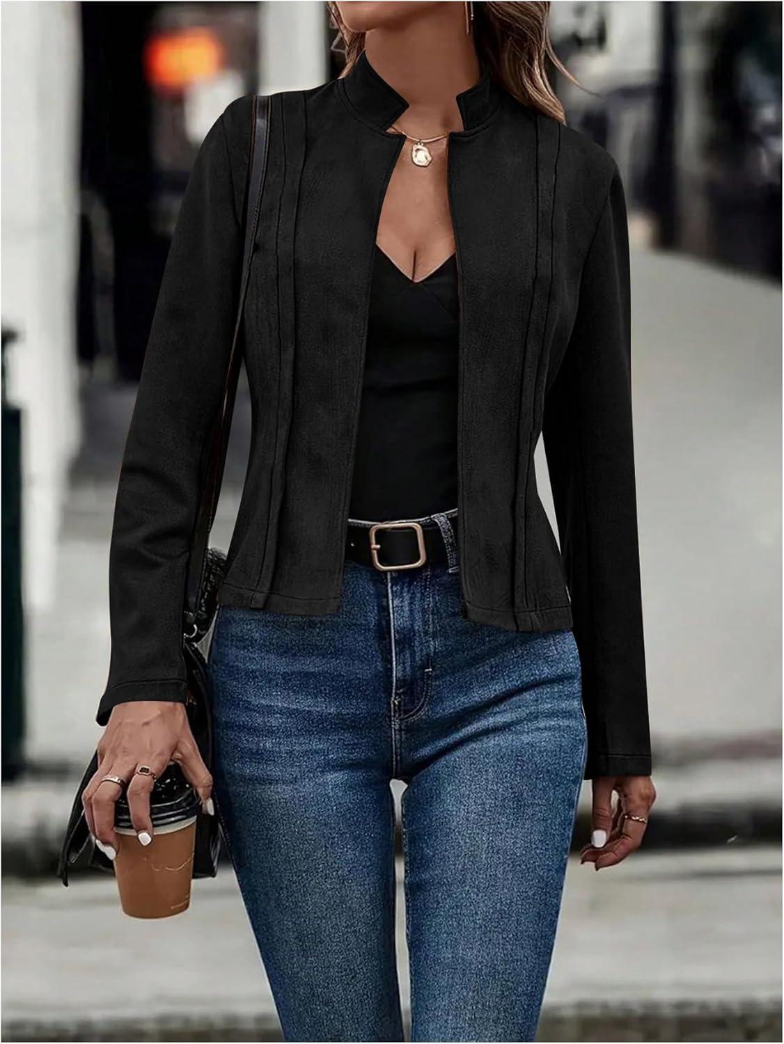 SOLY HUX Women’s Faux Suede Open Front Cardigan Jacket Long Sleeve Casual Vintage Outerwear(Pure Black)