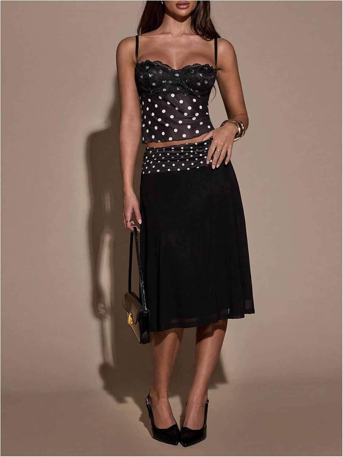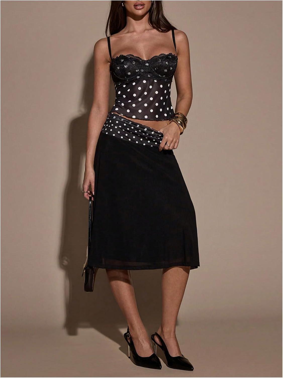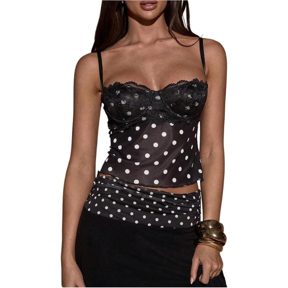 SOLY HUX Women’s Floral Lace Trim Camisole Spaghetti Strap Fitted Shirt Top Summer Crop Cami Tops(Black and White)