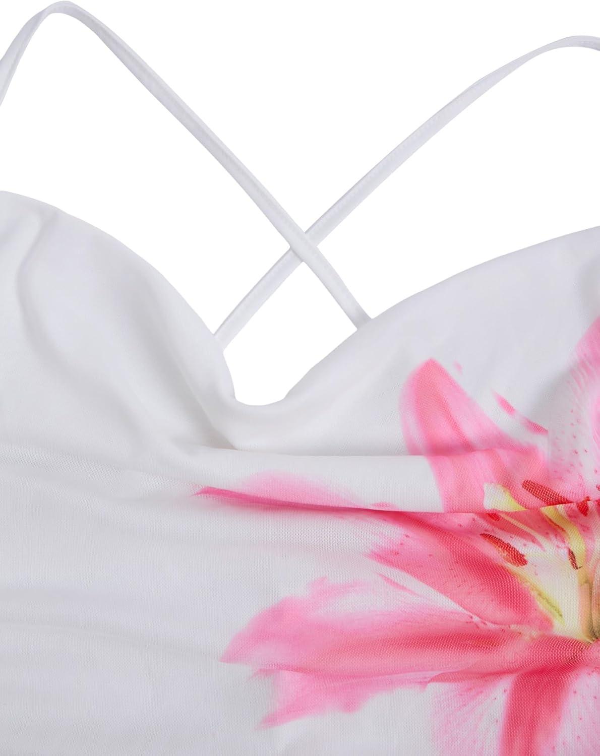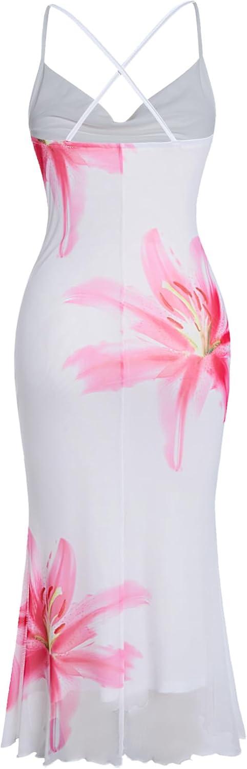 SOLY HUX Women’s Floral Mesh Bodycon Cami Dress Cowl Neck Sleeveless Cocktail Party Wedding Guest Long Maxi Dresses(Pink Flower Print)