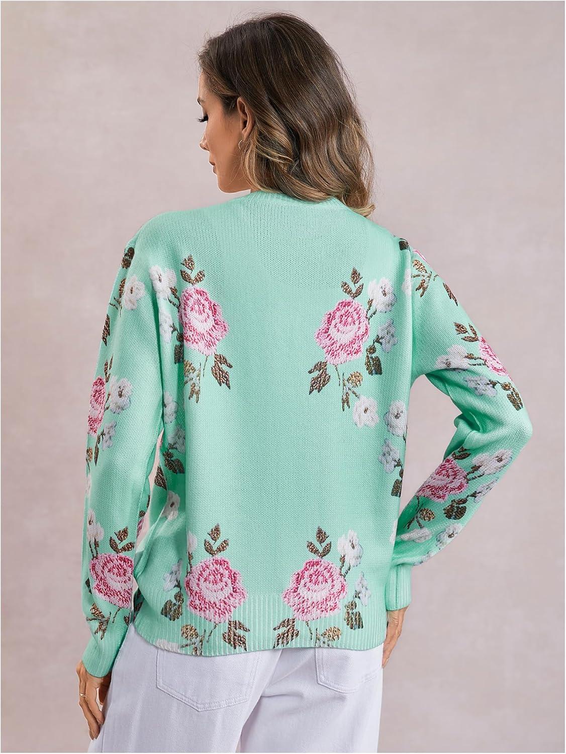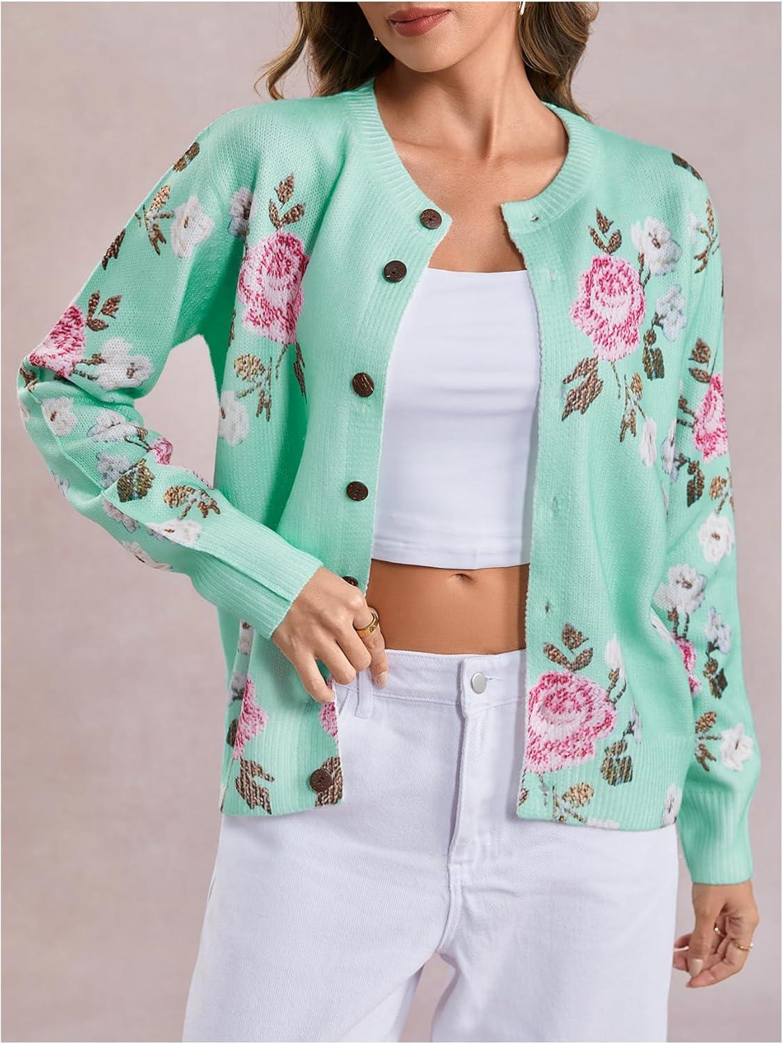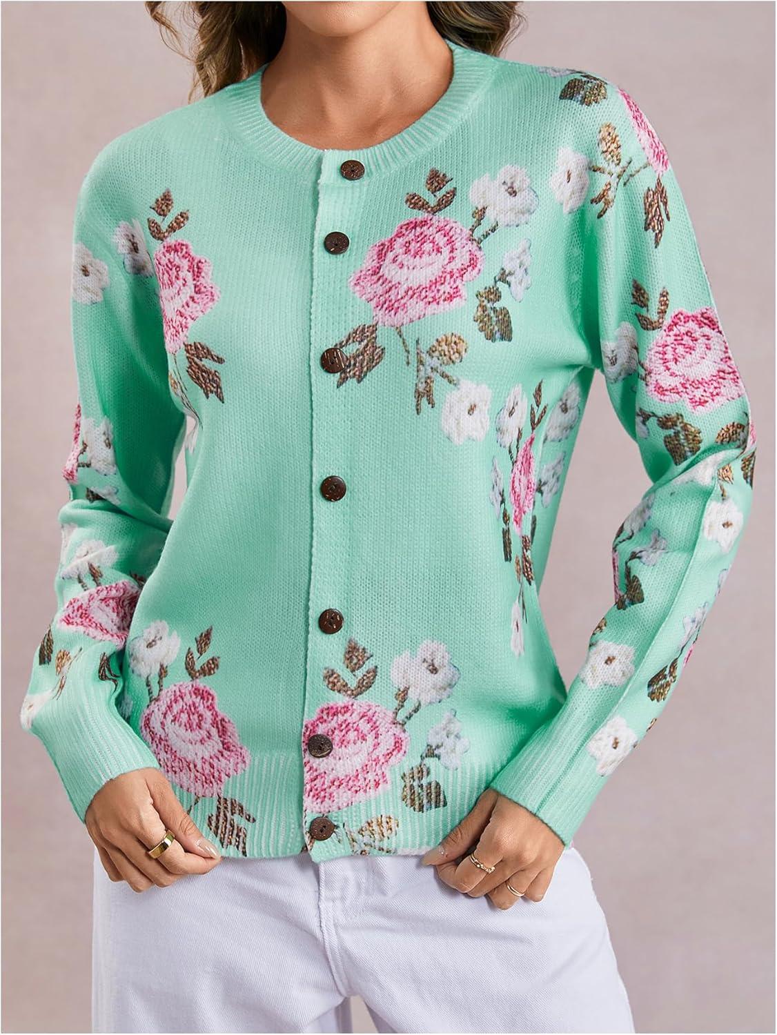 SOLY HUX Women’s Floral Print Button Down Cardigan Sweater Lightweight Cozy Fall Outfits Trendy 2025(Green Pink Floral)